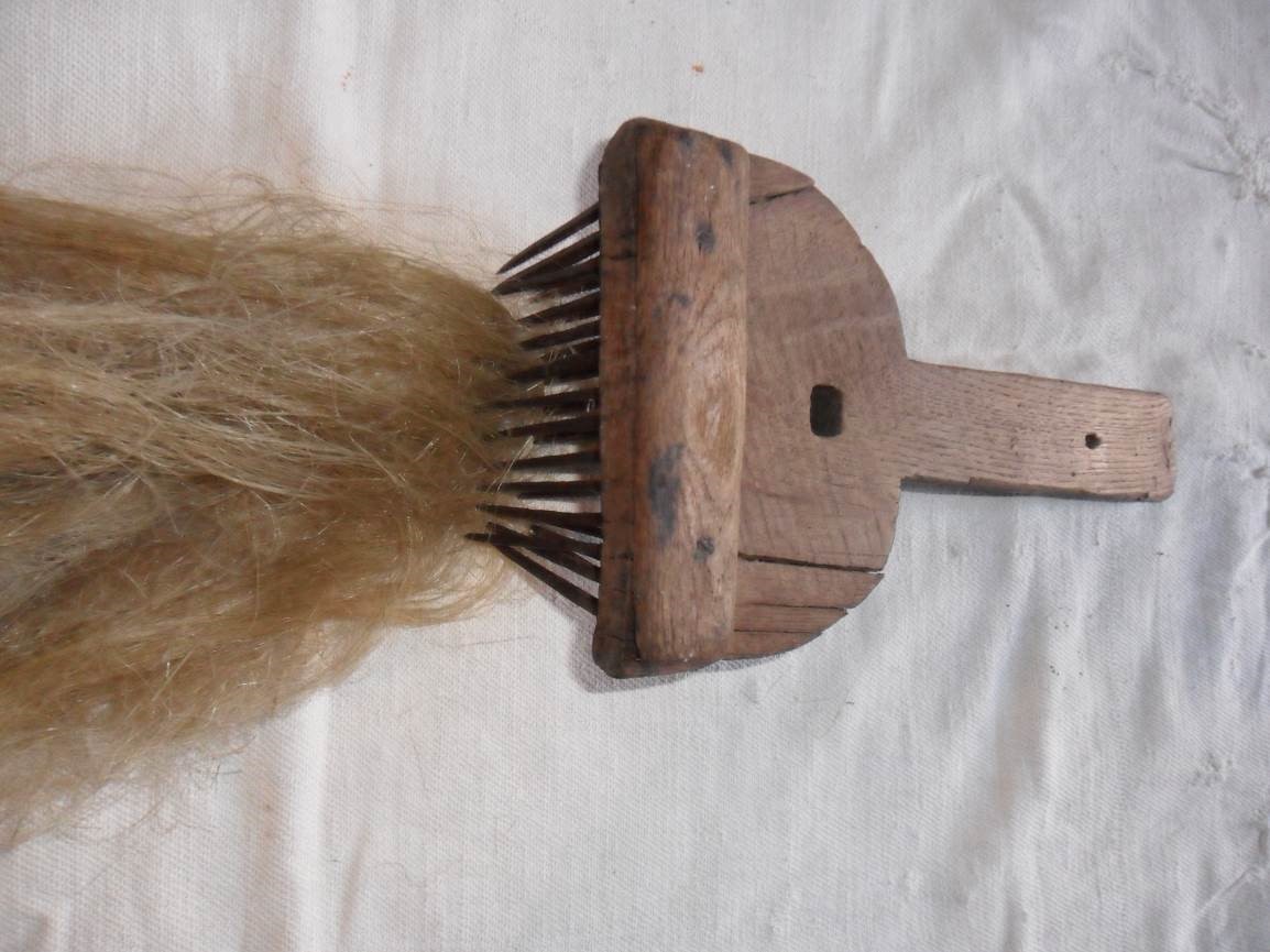 In passato i Piani Palentini erano trapuntati di piantagioni di canapa che andavano dal verde al dorato, a seconda delle stagioni. Erano concentrate, per lo più, nei campi confinanti con il fiume Imele, in quelli adiacenti al torrente Rafia e nelle zone denominate “Canapine” (il nome di queste località risale proprio alla vocazione seminativa). I covoni, una volta essiccati sui campi, venivano immersi in fiumiciattoli, ruscelli e fossi. Ancorati a pali conficcati nel greto e appesantiti da pietre e zolle per evitare che la corrente li portasse via, venivano lasciati in ammollo per un certo periodo di tempo. In questo stato i fasci fermentavano e gli steli maceravano. Fatte asciugare all’aria e al sole, le piante venivano poi battute. Si effettuava quindi un’ulteriore frantumazione delle fibre per mezzo della “macigna” (la gramola). Una volta tritata, la canapa veniva “pettinata” con altri attrezzi, sia per assottigliare i filamenti che per separare le parti legnose. Uno degli strumenti necessari, lo scardasso, era fatto di legno ed aveva numerosi chiodi sulla parte inferiore.