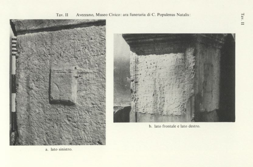 C. Populenus Natalis fu dunque curator arcae sevirum (Augustalium) ad Alba Fucens. Il sevirato era considerato un honor, perciò una summa honoraria veniva versata nell’arca da chi riceveva questo onore. Con la loro munificenza i seviri Augustales uguagliavano i decurioni.