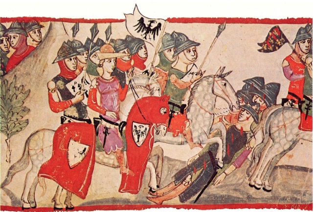 1. Su questo percorso non tutti gli storici sono d’accordo, soprattutto circa l’itinerario finale, quello che Corradino segue da Carsoli in avanti. L’Oman, il Lot, il Salvatorelli, il Runciman ritengono che egli avesse seguito la via Valeria, passando pertanto per Tagliacozzo e Scurcola, fino a giungere ai Piani Palentini, dove, presso il ponte sul fiume Salto, sarebbe avvenuto lo scontro. Lo Herde, al contrario, in base ai documenti e all’osservazione diretta del territorio, cerca di confutare tale tesi e di stabilire con maggior precisione il percorso fatto da Corradino. Infatti – dice Herde – nella lettera inviata a Clemente IV, il re Carlo afferma che Corradino aveva attraversato il Cicolano (e non la via Valeria), con l’intenzione di raggiungere Sulmona, dove si sarebbe unito ai Saraceni provenienti dalla Puglia. ↩︎