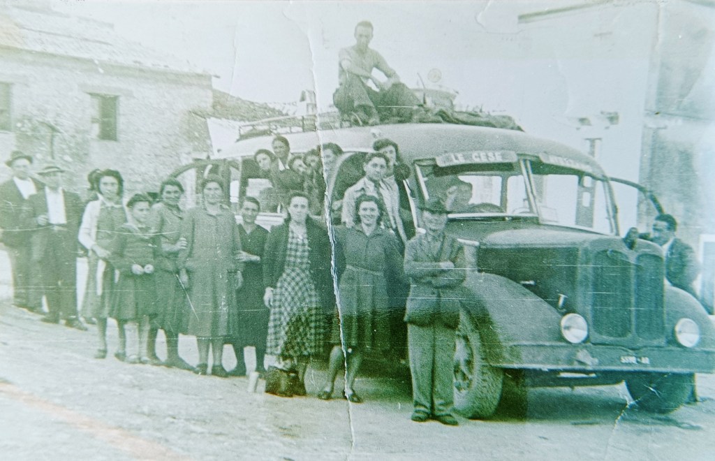Grazie anche a quel “carrozzino” molte lattaròle di Cese hanno potuto sviluppare la propria attività e creare progresso; in generale si intuisce facilmente come il servizio di trasporto fosse cruciale, al tempo, per un piccolo paese come il nostro, chiamato – suo malgrado – ad affrontare una nuova fase economica e lavorativa nella quale i centri urbani andavano assumendo sempre maggiore centralità. «All’inizio avevamo due autobus (il primo in assoluto è stato l’”Isotta Fraschini” dal tipico muso allungato)», racconta Maria, «poi ne abbiamo comprato un terzo. Le tratte assegnate a noi erano quelle di Cese, del giro dei piani palentini e di Antrosano. Con uno degli autobus gestivamo anche i viaggi organizzati, praticamente tutte le domeniche, ad esempio con le suore (San Marino e San Franco erano tappe fisse…), per le gite e per le colonie estive, a volte anche per qualche matrimonio celebrato fuori. Io andavo quasi ogni domenica, spesso assieme a Nando… E poi c’era la 1100 per il servizio auto; e tante volte è stata necessaria per situazioni di emergenza…». Alcuni dettagli, al riguardo, vengono forniti da Oreste, il figlio maggiore di Rocco (dopo di lui, da Rocco e Lina sono nati Raffaele e Mario): «La concessione per il servizio auto era una cosa a parte rispetto al servizio di trasporto locale, ed era intestata a papà. La gestione degli autobus era tutta in capo a zio Carmine, ma come sai in queste cose le famiglie sono interamente coinvolte».