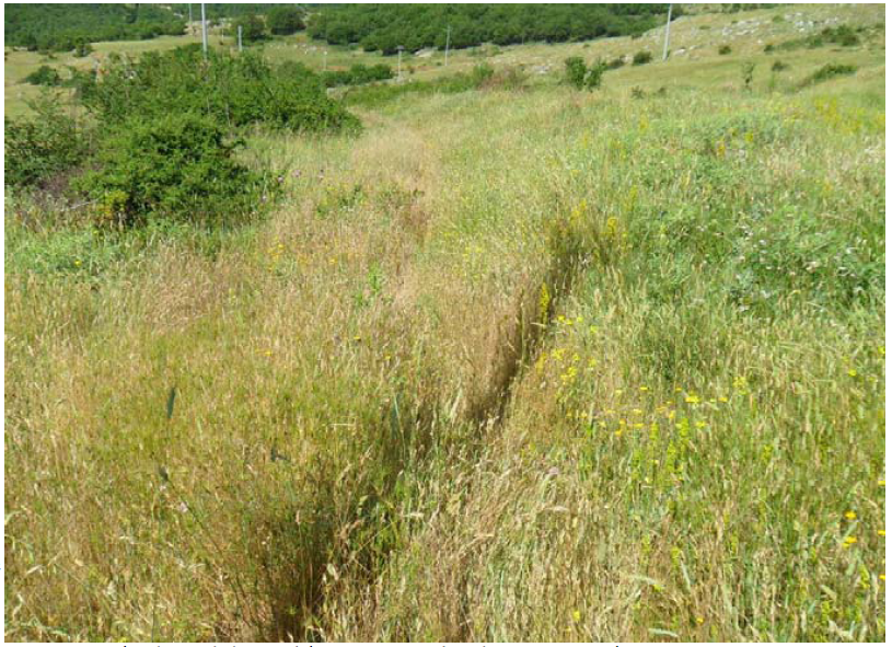 Sulla scorta di questi elementi, ho ricercato notizie ed indicazioni (anche verbali) che riconducessero al caso in oggetto. A tale riguardo, più di un anziano che coltiva, pascola o abita nelle adiacenze di quel territorio ha confermato la veridicità della nota, avvalorata da notizie tramandate o da esperienze dirette. Alcuni, fra l’altro, ricordano che fino ai primi anni ’50 erano anche loro a percorrere gli stessi tratturi che, oltre un secolo fa, collegavano il nostro paese a quelle contrade. Lo facevano guidando i loro animali a piedi, naturalmente. Un tratto di quella via che in passato veniva percorsa da greggi, mulattieri e viandanti è ancora individuabile, in quanto delimitata da siepi e pietrame. La stradina (riportata in foto) si lasciava alle spalle gli ombrosi e verdi pendii del Monte Pao (la cui sommità è poco distante dalla chiesuola di Santa Maria del Monte di Capistrello); serpeggiando poi sulla collinetta che s’interrompe sulla provinciale, l’attraversava per proseguire verso Cese, dopo aver percorso gli avvallamenti lungo i Piani Palentini. Il vecchio tratturo passava praticamente in prossimità dell’attuale sede della ditta “CODIMAR” e costeggiava il cosiddetto “Rafione” per immettersi sulla strada interpoderale che, attraversando il ponte della Madonna delle Grazie, raggiunge Cese. Naturalmente a quel tempo il viottolo, così come l’originaria strada di campagna, era erboso o in terra battuta. Per le esigenze del tempo erano comunque tratti comodi sia per il collegamento che per il transito di greggi, oltre che di asini e muli col basto. Bisogna considerare, a tale riguardo, che il diritto a pascolare ed a legnare in un territorio ricco di risorse naturali, benché più lontano dal centro abitato, rappresentava una fonte economica rilevante.
