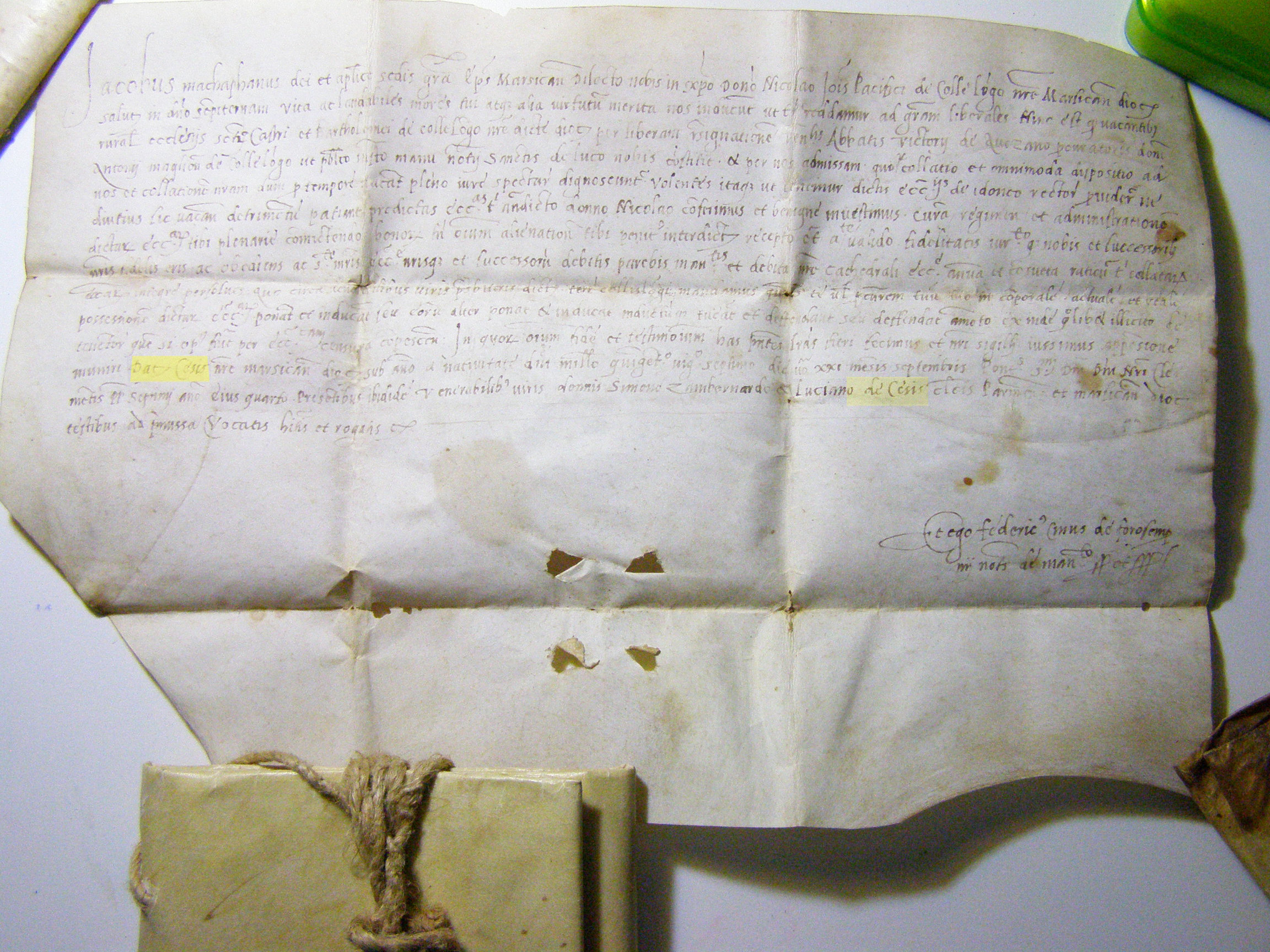 A riaccendere il dibattito ha contribuito il rinnovato interesse attorno alla famiglia dei Vescovi Maccafani, originari di Pereto ma profondamente legati all’ambito religioso di Cese ed alla locale chiesa. Gli studi recenti si sono concentrati in particolare su un fondo pergamenaceo riguardante la famiglia peretana ritrovato presso l’archivio della diocesi di Matelica. In queste pergamene, trentasei in tutto, sono custodite informazioni inedite su persone e relazioni che sono state definite utili “per ricostruire non solo la storia della nobile famiglia, ma in generale della Marsica”. La pergamena che riguarda Cese in maniera stretta è la numero 31, datata 21 settembre 1527, con la quale il vescovo Giacomo Maccafani nominava Nicola di Giovanni Pacifici di Collelongo titolare della chiesa di San Castro e San Bartolomeo di Collelongo (per libera dimissione dell’abate rettore di Avezzano don Antonio Maglione di Collelongo). A chiusura della nomina si legge chiaramente la dicitura “Datum Cesis”, seguita dalla data. Nelle righe finali, inoltre, viene elencato tra i venerabili presenti un “Luciano de Cesis”.
