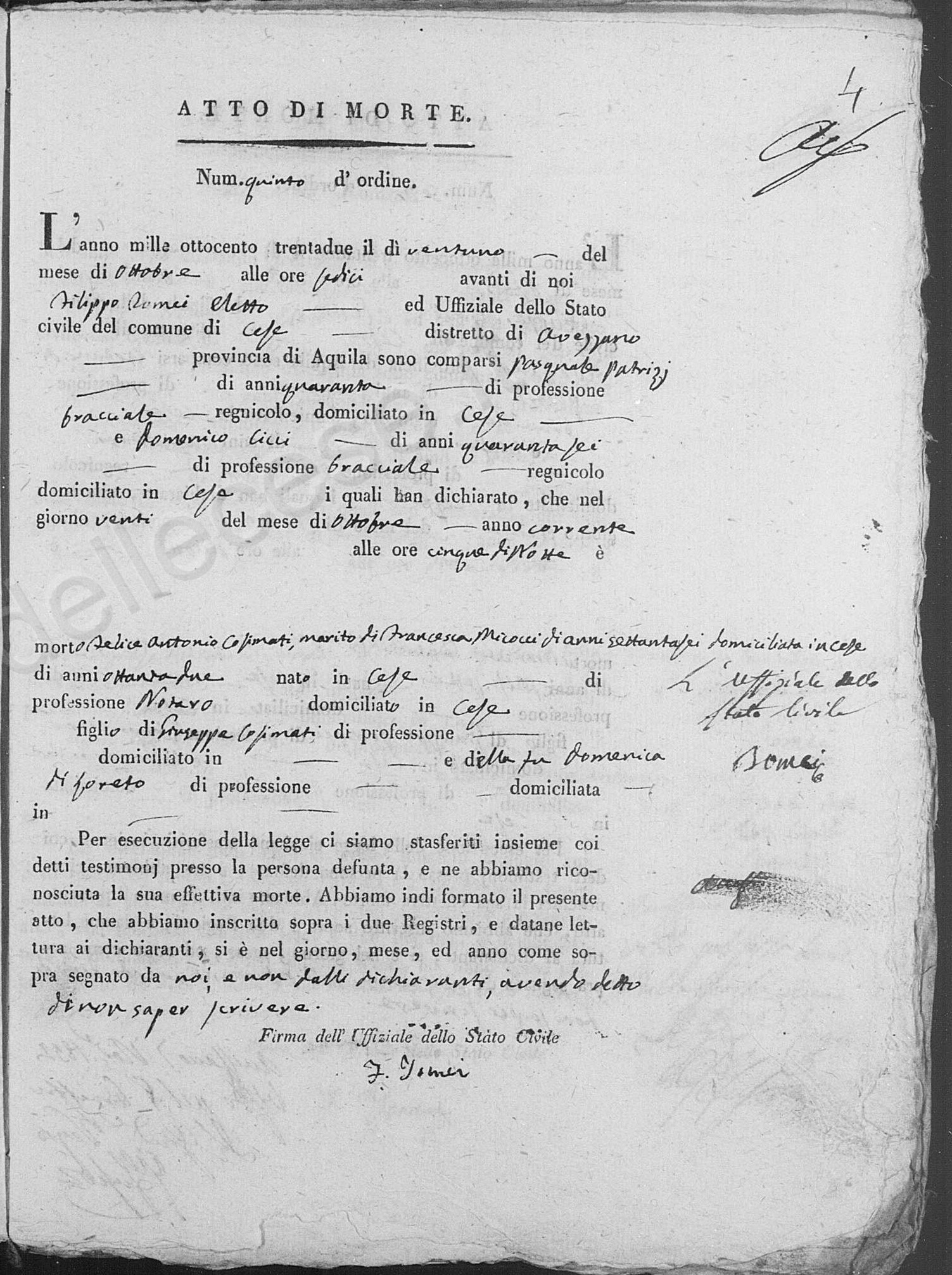 [2] A.S.AQ, Protocolli notarili del distretto di Avezzano, notaio Benedetto Spina, b. 142, vol. IV, ff. 42v-43r.