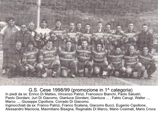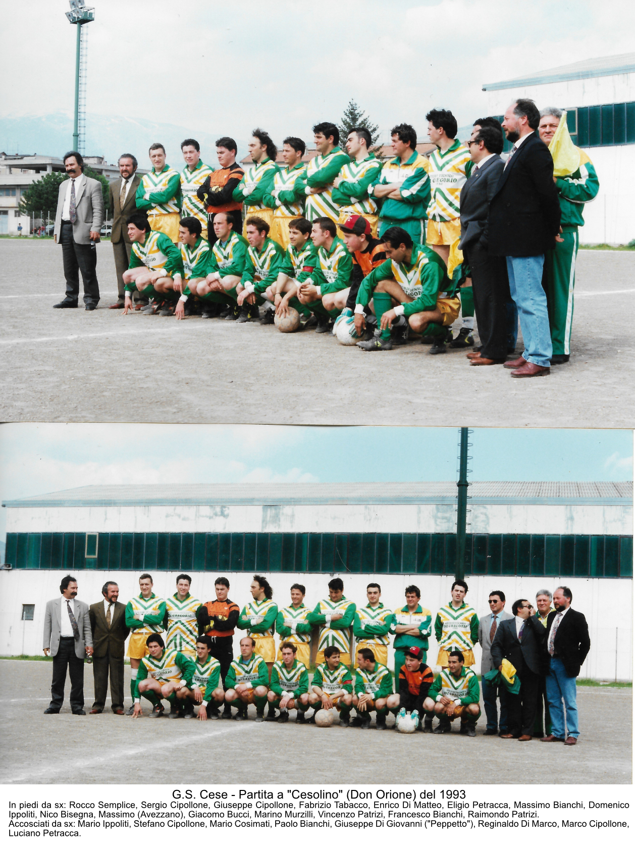 La squadra che ha partecipato ai campionati dilettantistici regionali è stata fondata nel 1983 per iniziativa di un nutrito gruppo guidato da Vincenzo Patrizi, i due Emilio Cipollone, Gildo Di Giamberardino, Raimondo Patrizi e altri. In rosa c’erano solo alcuni elementi di fuori, ma il nucleo della squadra era composto da “cesaròli”, tra cui anche Fiorello Cosimati, Sergio, Agrippino e Mario Cipollone (di Tullio), Sergio Di Matteo, Agrippino Cipollone, Felice Torge… Emilio “di Oreste” ricorda che alcuni come lo stesso Gildo e Mario Cipollone giocavano già a Villa San Sebastiano, prima di entrare nella squadra di Cese; il destino volle che la prima partita si disputasse proprio a Villa, dove i nostri andarono a vincere con una rete di Felice Torge. Dopo alcuni anni di pausa, il “G.S. Cese” si è nuovamente iscritto ai campionati dilettantistici regionali alla fine degli anni ’80 e vi ha partecipato fino al 2019, con un progressivo e naturale ricambio generazionale che ha permesso a tanti ragazzi del posto di calcare i campi della terza, della seconda e della prima categoria. Il punto più alto è stato raggiunto nel 2002 e poi nel 2008 con le finali dei play-off per l’accesso al campionato di Promozione. La prima, contro Tollo, è rimasta negli annali per via di un arbitraggio sconsiderato che portò a quattro espulsioni ai danni del Cese nei primi venti minuti di gioco; la seconda ha invece visto prevalere la squadra del Fontanelle. Di questa generazione hanno fatto parte, oltre ai nomi citati, alcuni capitani storici come Giuseppe, Eugenio e Mirko Cipollone, e giocatori di lungo corso come Mario Cosimati, Paolo Salustri (portiere), Giacomo Bucci (detentore del record di oltre 200 goal con la maglia del Cese), Maxmiliano Bisegna e Juri Di Giacomo. I dirigenti/collaboratori/tecnici più presenti in quegli anni, solo per citarne alcuni, erano Vincenzo e Franco Patrizi, Enrico Di Matteo, Corrado Di Giacomo.