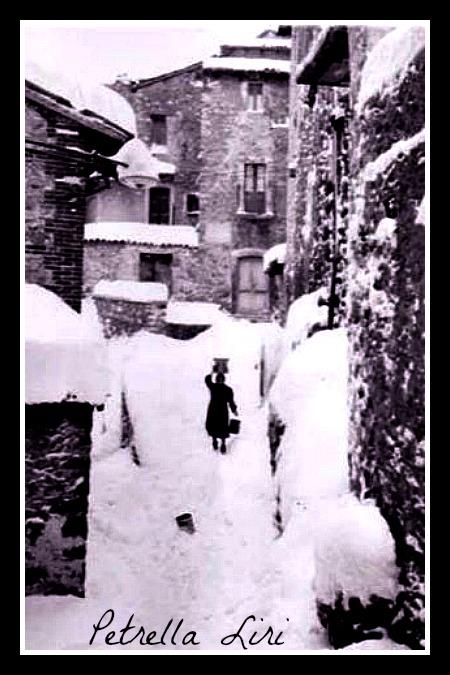 Oltre all’evento che portò al crollo del tetto della chiesa nel 1876, i più anziani al tempo avevano ancora impresse nella memoria le immagini di un’altra nevicata storica, avvenuta nell’inverno 1928/1929. Come raccontava Vincenzo Cipollone (“de Papparéjjo”), in quell’occasione si gelarono persino le piante degli olmi e dei pioppi. “I pioppi che stavano in campagna si spaccarono a metà con la gelata, e pure tutte le vigne si gelarono. Il freddo era talmente forte che la neve non si sciolse per tutti i mesi di gennaio e febbraio. La Rafia era già in piena quando si ghiacciò, poi ci nevicò nuovamente e si creò uno strato liscio, piano, tanto che ci si poteva passare sopra. Poi fecero tante giornate di sole e la neve si cominciò a sciogliere, ma il primo giorno in cui si riuscì ad andare in campagna fu il 19 marzo, San Giuseppe; fino ad allora rimase tutto coperto di neve”. “Noi ci avventuravamo su in montagna per procurarci un po’ di legna; frasche, spine, bossi… al tempo non si sprecava niente, persino l’erba secca, la pastenaca in campagna, per riscaldarsi si usava di tutto, la cama, la paglia…”.