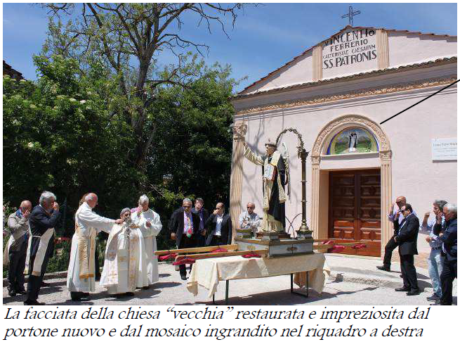 Già dall’origine, la chiesa dedicata a San Vincenzo Ferreri era stata concepita come soluzione temporanea da utilizzare per far fronte all’indisponibilità della chiesa madre, che sarebbe stata ricostruita solo nei due decenni successivi. Scriveva, a tale riguardo, Don Vittorio, in risposta ai contributori: “In quanto alla moneta che avanzerà, sarà mio pensiero a suo tempo di tenervene informati e di darvi la distinta delle spese fatte. In ogni caso la cosa più necessaria che resta da fare è un armadio di sacrestia (di bella esecuzione, dovendo poi servire per la Chiesa grande), poiché al presente gli arredi sacri formano la delizia dei topi ed il morbido riposo della polvere. Intanto ci stiamo arrangiando con tre tavolinucci che mi ricordano quelli dei frittellari di Napoli e degli abbacchiari di Roma. Però una cosa alla volta”. Già la scelta dell’armadio della sacrestia, dunque, era orientata verso il riutilizzo all’interno della chiesa madre.