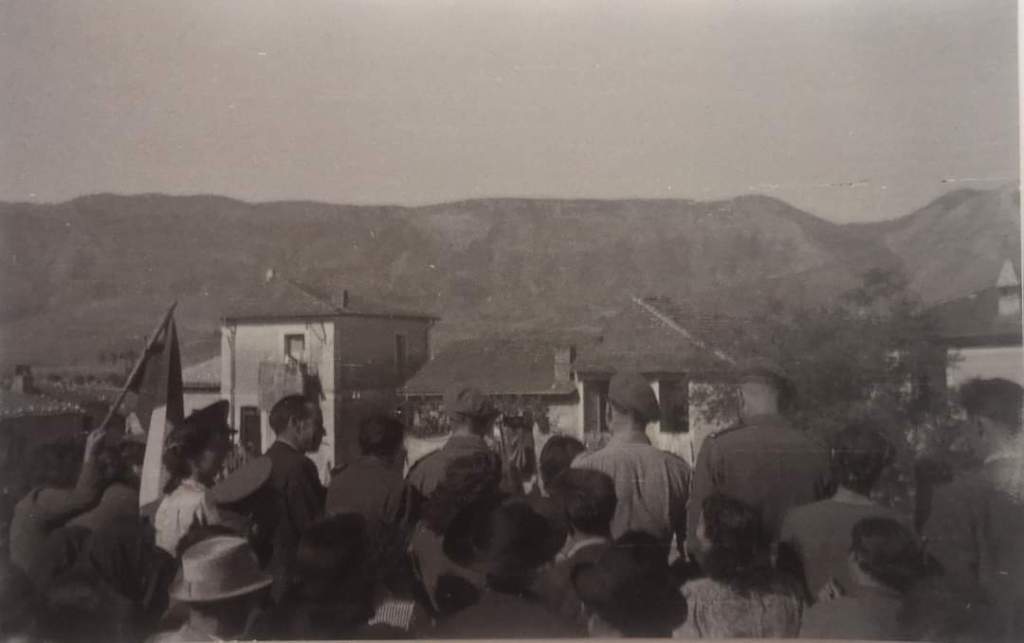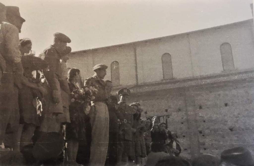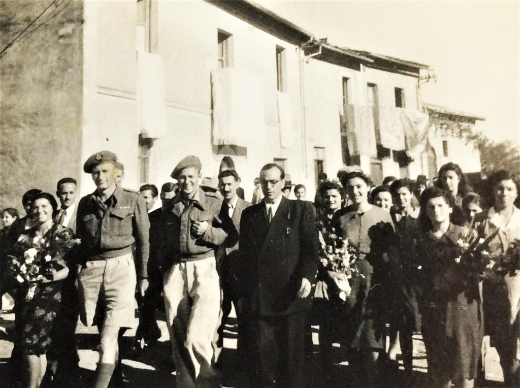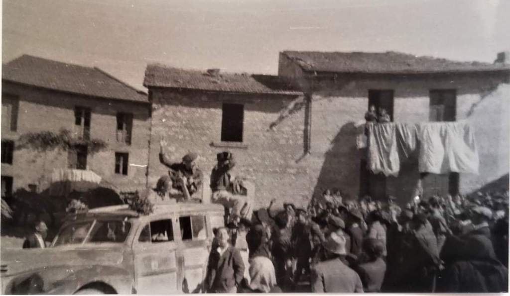 Nella foto che immortala il momento dei discorsi delle autorità, il colonnello Fountaine, il capitano Allsebrook e l’ingegner Ciciarelli sono, tra gli altri, sul muraglione a ridosso della vecchia fontana (immagine di proprietà di Simon Allsebrook. Tutti i diritti riservati, nessuna riproduzione consentita). Tutta la popolazione assisteva fremente, forse ancora incredula ma in cuor proprio speranzosa che la guerra fosse davvero finita.