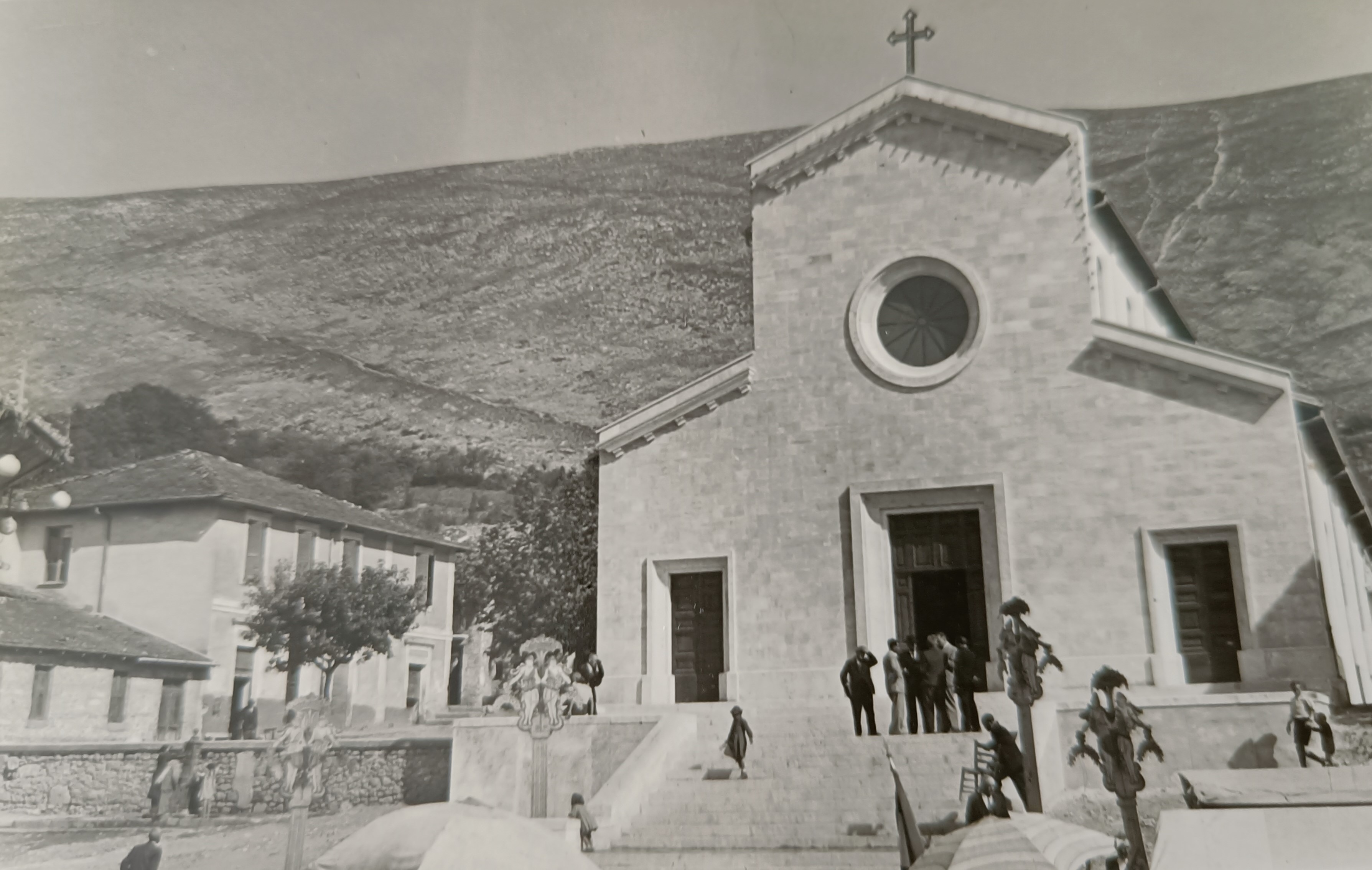 In un’altra foto della famiglia Cosimati, sicuramente databile ai primi anni ’50, si nota la facciata nella propria versione definitiva, con i portali, tutte le lavorazioni e la gradinata completata (senza gli alberi laterali). Pur non nascondendo la propria età, ad ogni modo, dopo quasi 75 anni la facciata si fa apprezzare ancora nel proprio aspetto, contribuendo ad arricchire in pregio e storia la nostra chiesa madre.