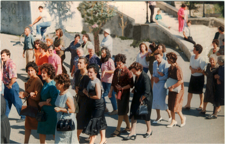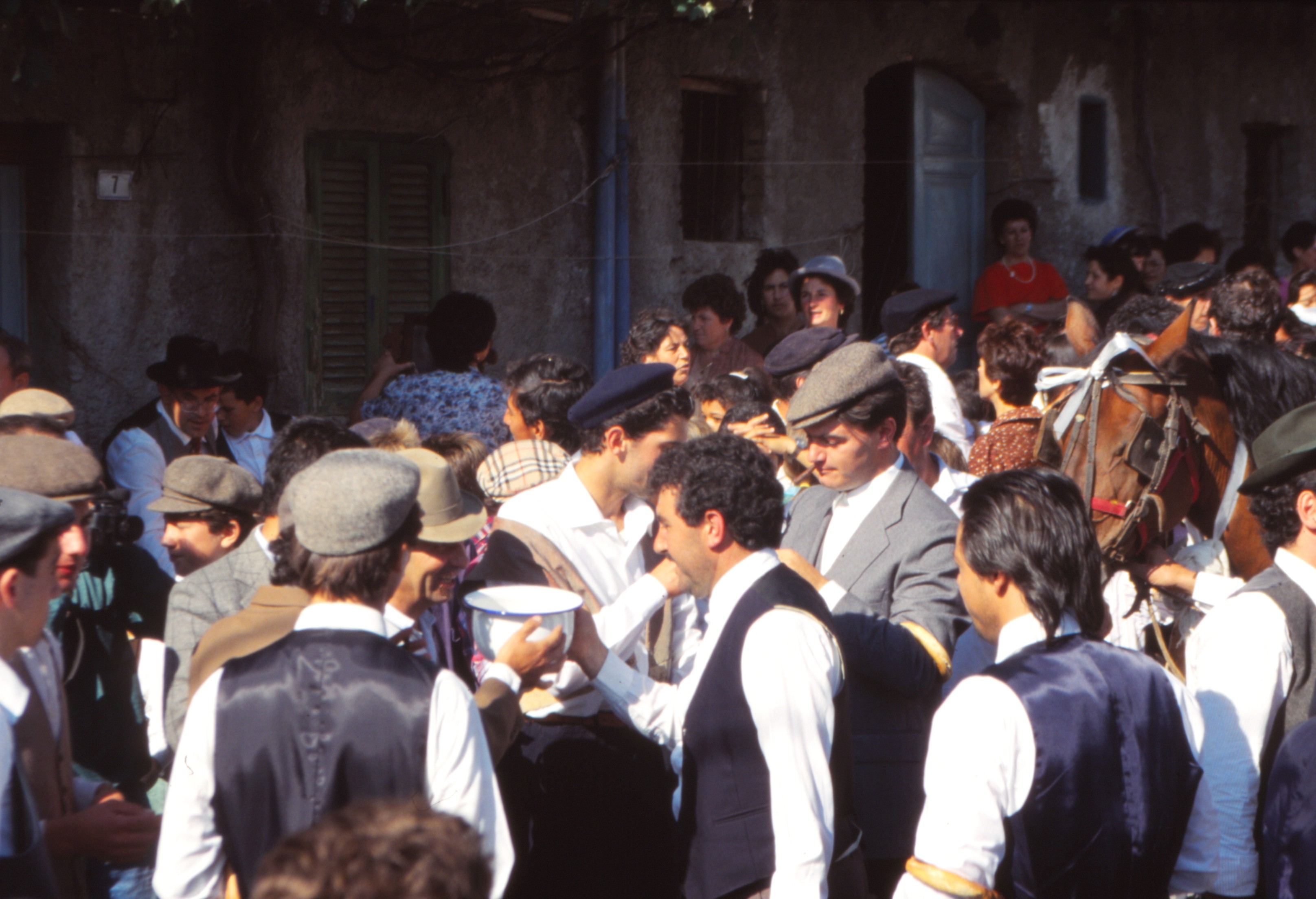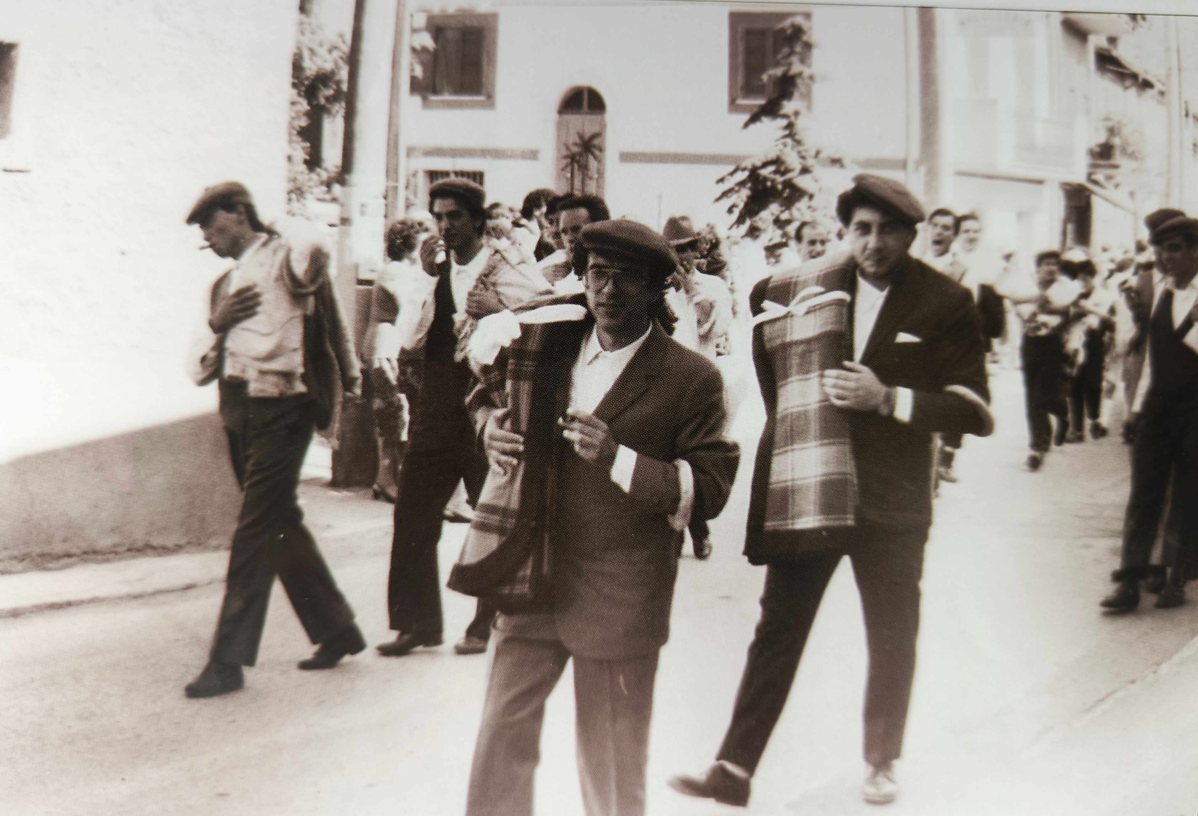 Le donne, di solito, portavano la biancheria e gli indumenti intimi della sposa, mentre agli uomini erano destinati i capi più pesanti, gli utensili, la “batteria” di rame e i pezzi della mobilia. Il corteo precedeva sia la sposa che la sua famiglia. Era la madre a chiudere la fila, sostenendo sul capo una “conca” ricolma di vino. Raggiunta la nuova abitazione degli sposi, quindi, la dote veniva portata in casa. Il recipiente di vino, invece, veniva offerto ai consuoceri, in segno di legame parentale. Con quello e con altre vivande, “chiòrtaji” e biscotti, venivano rifocillati tutti i partecipanti. Un andirivieni di vassoi, boccali, fiaschi e bicchieri faceva da piacevole scenografia a tutto il singolare contesto. Questo particolare costume è in verità quello che rimane più vivo e indelebile nella mente di chi lo ha vissuto direttamente, ma anche nella memoria dei ragazzi che lo hanno conosciuto marginalmente.