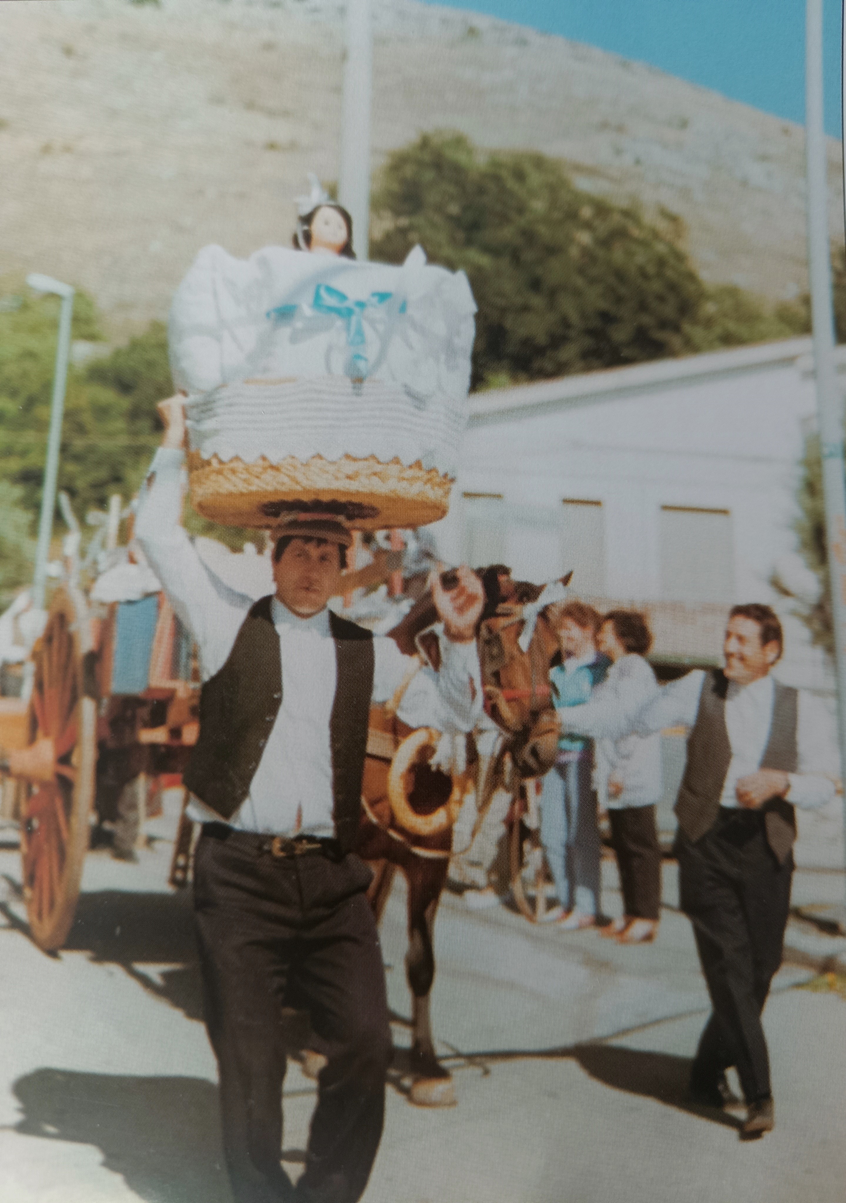“Per il corredo ci portavamo, tra le altre cose, 40 asciugamani, 22 lenzuola normali e 3 finimenti ricamati (ognuno composto da due lenzuola e quattro federe), che poi durante il carraggio si mettevano in un cesto grande assieme ai cuscini, alle pagnotte di pane… poi la pasta, le arance appese, tutti gli ornamenti… Venivano tutti i ragazzi e le ragazze del paese, chi con i tessuti, chi con i chiortaji infilati al braccio, e si faceva un bel rinfresco, era una vera festa. Con il carraggio si portava tutta la biancheria: coperte d’inverno, coperte d’estate, e nel nostro caso, siccome lavoravamo tanto, il carraggio era ricco: tante coperte, tanta biancheria, e tra le altre cose c’era anche la macchina da cucire (mamma ne aveva previste sei: una per ciascuna figlia). Io però le dissi: «La macchina non me la porto perché ora ho già tutto cucito, e se mi servisse potrei comunque venire a cucire da te». Ai miei tempi era comunque difficile iniziare la nuova vita di coppia. I genitori fornivano la casa, il grano, il necessario per la sussistenza, ma non tutte le famiglie potevano dare in dote anche gli animali da lavoro, perché magari avevano una sola vacca e ovviamente serviva a loro. Allora, siccome avevamo delle belle vitelle già grandi – alcune erano pure gravide – dissi a mamma: «Lascio la coperta “vàllica” (una bella coperta rossa), dodici asciugamani e altre cose del corredo ma mi voglio portare una bella vitella incinta». Così al carraggio, dopo le lenzuola, i materassi e tutto il corredo, portarono pure la vitella, che in futuro ci sarebbe stata utile per lavorare la terra. E abbiamo avuto fortuna, perché poi ha partorito e quindi siamo stati bene perché avevamo la vacca da mungere, il vitello, l’aiuto per la campagna… e questa è tutta provvidenza”.