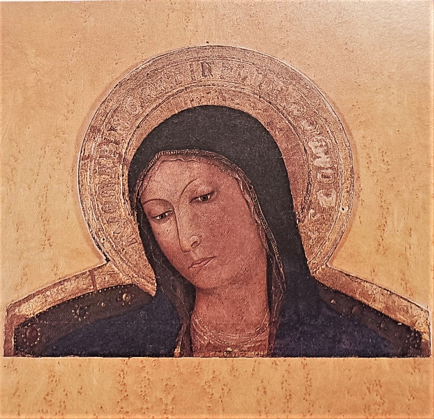 Già nel 1928 Don Vittorio Braccioni aveva individuato nell’intervento umano la maggiore causa di danneggiamento della preziosa tavola: «Su questa tempera si scorgono i segni delle preoccupazioni deleterie degli uomini più che del tempo. Infatti: nell’aureola dorata si distinguono bene le tracce della leggenda (sic) in lettere gotiche “Ave Maria, ecc”, ma anche bene si conosce che le lettere furono di proposito staccate dallo stucco che le teneva obbligate alla tavola e ciò perché esse saranno state di metallo prezioso. Non mi fermo a parlare di altre prodezze compiute in epoca meno lontana, come, ad esempio […] di una corona (preziosissima, si era creduto) di comune metallo stampato e dorato, tenuta con chiodini direttamente sulla pittura che ne ha riportate numerose (e graziosissime, no?) graffiature visibili anche a distanza. A coronamento di tanto vituperio, una mano incompetente volle tentare il restauro di alcune parti del dipinto, producendo macchie ed ombrosità sgradevoli e palesi». E poi: «Questa tavola ha dato prova di resistenza meravigliosa alle ingiurie del tempo. Vi si nota soltanto una forte incurvatura in avanti, ma ciò nonostante, neppure la benché minima screpolatura. Lo stucco è ancora ben saldo, ad onta dei geli, dei calori e dell’umidità cui è stato necessariamente esposto anche dopo il disastro tellurico. Poche le tracce dei tarli. Le avarie che si riscontrano sono dovute tutte all’ignoranza degli uomini».