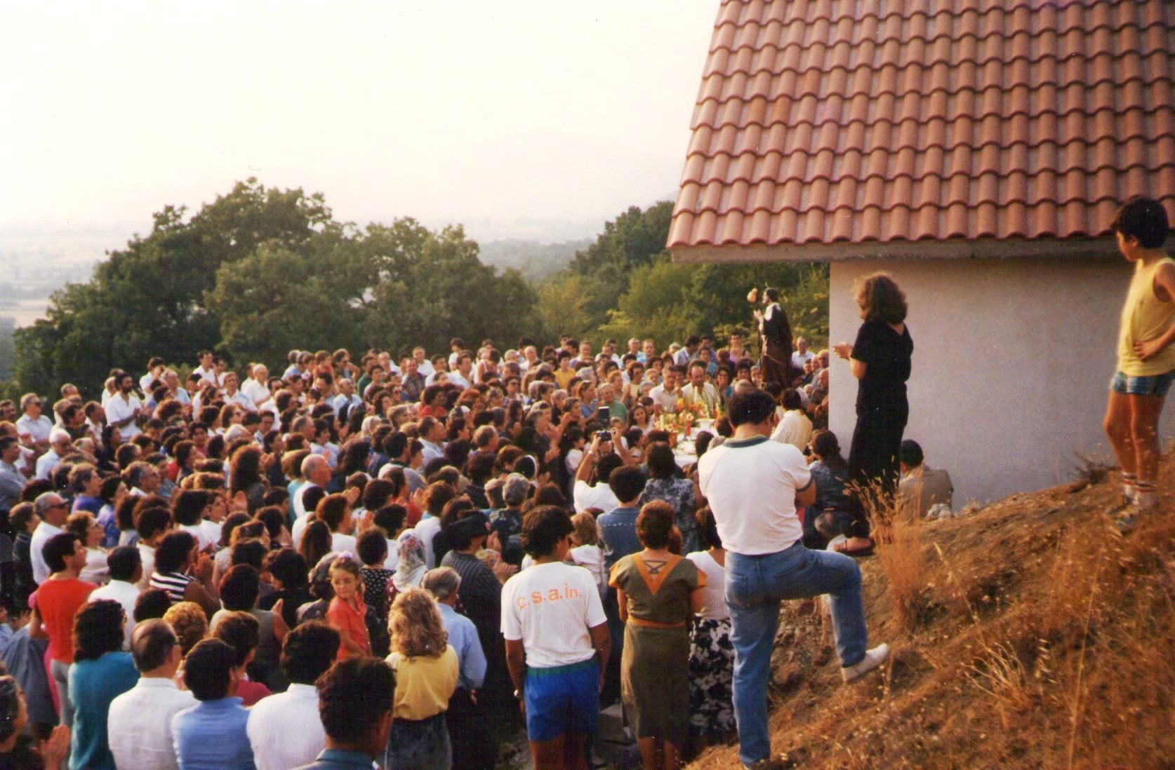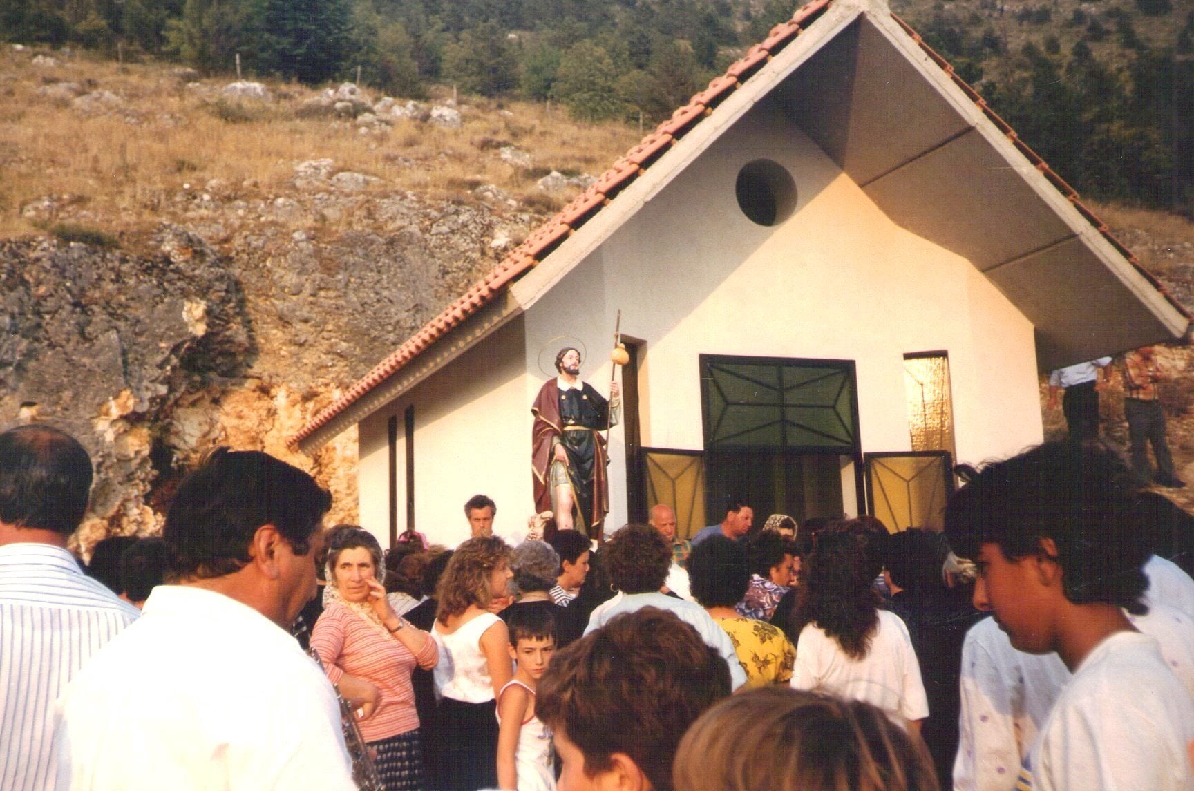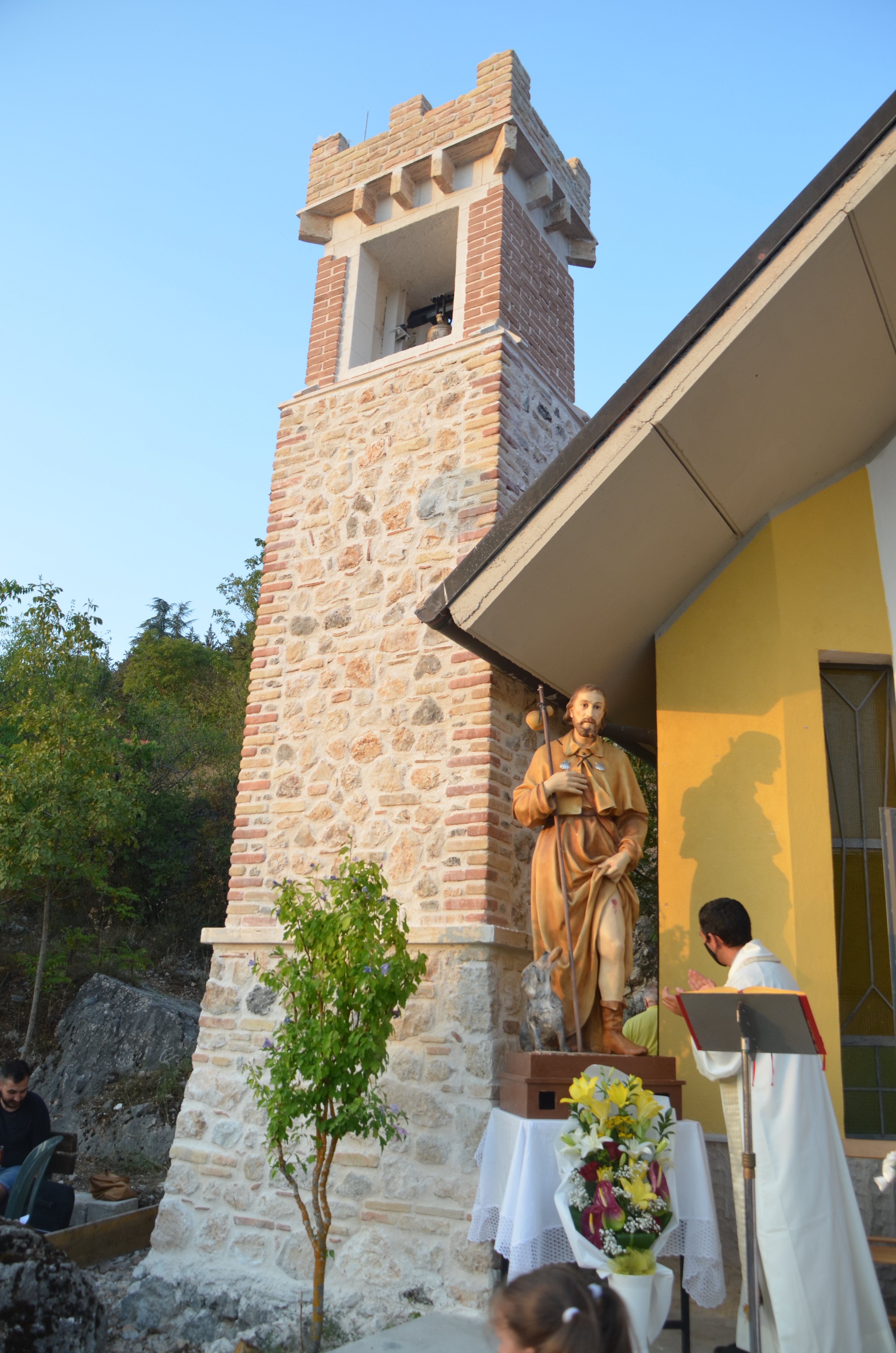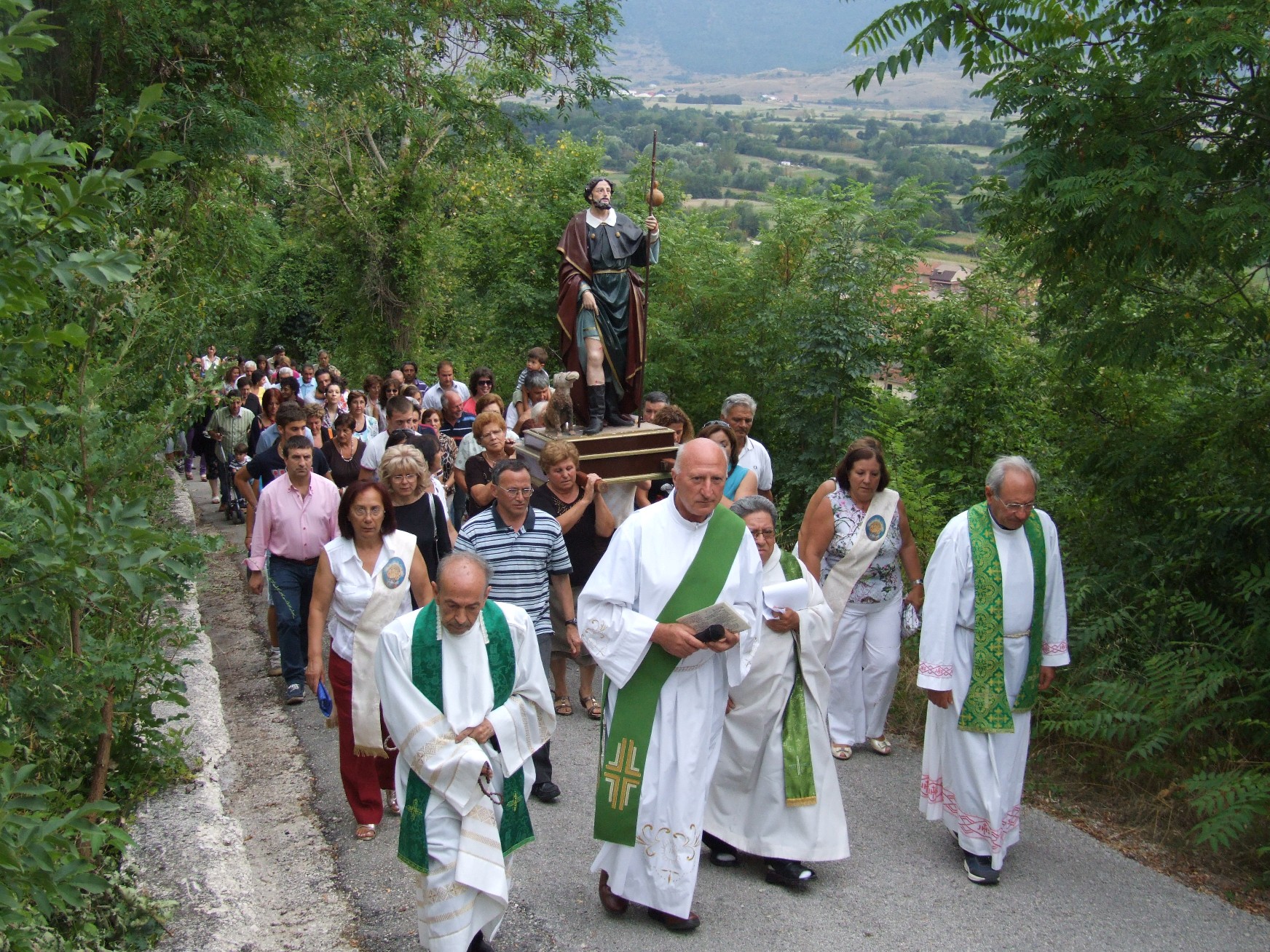 Al di là delle vicende legata alla piccola chiesa montana, resta da decifrare e collocare nel tempo l’origine del culto locale verso San Rocco. Come noto, il Santo è popolarissimo da secoli in Europa e nel resto del mondo. Lo si invocava in particolare contro la peste, malattia che rappresentava un autentico flagello soprattutto nel medioevo, epoca in cui si diffuse a più riprese mietendo milioni di vittime. È dunque facile pensare che attorno al XVI secolo il culto sia giunto con forza anche nel nostro territorio ed abbia ispirato l’edificazione di un piccolo santuario dedicato al Santo, a cui i malati ricorrevano spesso nelle implorazioni assieme a San Sebastiano e San Leonardo. San Rocco e San Sebastiano, in particolare, sono gli unici due santi a cui sono dedicate vie o piazze di Cese, a testimonianza di un affetto e di una devozione non comuni tra la popolazione locale[4]. Per quanto riguarda invece la statua del Santo, non si hanno ad oggi notizie certe sulla realizzazione originale; nell’inventario parrocchiale del 1929, alla voce “VIII) Statue – Quadri”, in corrispondenza di S. Antonio Abate e S. Rocco, di carta pesta, sembra leggersi “di corrente fattura tecnica”. In passato, anche prima del terremoto, la statua di San Rocco era custodita sempre nella chiesetta a lui dedicata e veniva prelevata e portata giù solo in occasione della festa dedicata al Santo. Oggi la statua viene prelevata ogni anno il 16 di agosto per essere riportata in processione nella chiesetta dedicata, dove si celebra la messa che vede la partecipazione di tantissime persone. Non è noto quando la consuetudine sia iniziata, ma è certo che in passato i festeggiamenti in onore di San Rocco non cadevano nel mese di agosto. In un bollettino parrocchiale del 1925, infatti, il parroco del tempo Don Vittorio Braccioni scriveva: “Le tradizionali feste in onore di S. Vincenzo Ferreri e di S. Rocco si sono celebrate nei giorni 3 e 4 maggio con grande solennità e sono riuscite splendidamente”. Per recente consuetudine, dopo il rito liturgico il comitato dei festeggiamenti offre una gradita merenda a tutti i presenti; al termine, si ridiscende in paese alla spicciolata e molti ricevono un ulteriore festoso ristoro dagli abitanti di Via San Rocco. Un bel segno di unione e di comunità.
