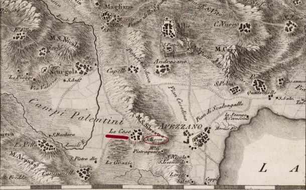 [2] Nella mappa, tra l’altro, il nostro paese appare come “Le Cese” e il Salviano è riportato come “M.S.Silvestro” con “Ma. di Pietraquara”.
