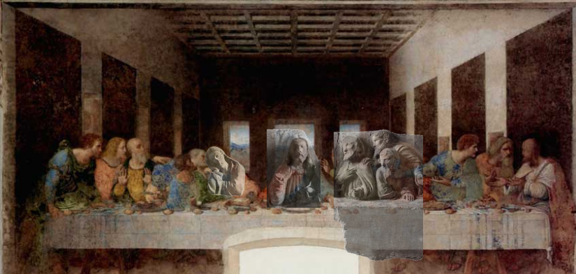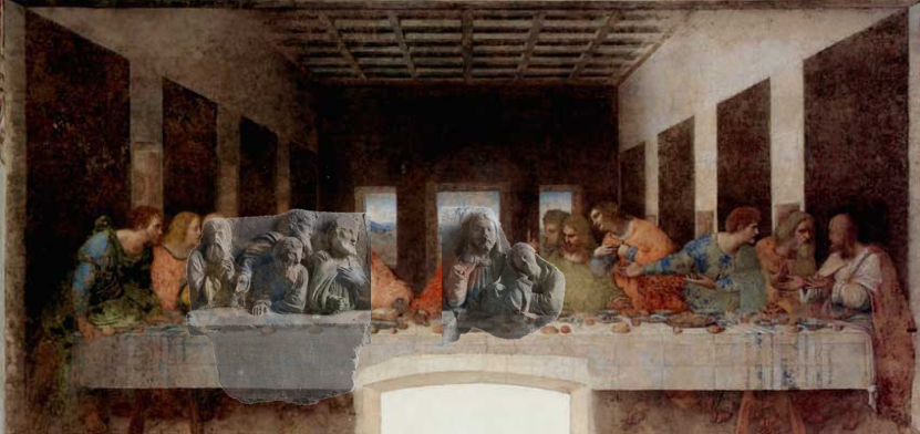 In ogni caso, l’attuale collocazione delle sculture non rappresenta l’unico mistero che avvolge la loro storia. L’altro, di natura più strettamente artistico-storiografica, riguarda il possibile – parziale – legame con quello che è considerato il più grande genio italiano e mondiale, ossia Leonardo da Vinci. Un richiamo certamente azzardato e di difficile definizione, ma che ha vaghe radici nel viaggio di Leonardo in Abruzzo tra il 1499 ed il 1501[4] e si aggrappa all’ipotesi che vede Leonardo a Celano e nel Fucino già nel 1473[5]. In quegli stessi anni nasceva a Cese Pietro Marso e nei decenni successivi la chiesa locale avrebbe vissuto il proprio periodo di massima rilevanza, grazie soprattutto alla predilezione dei vescovi Maccafani e della nobile famiglia dei Colonna. La circostanza si può facilmente ascrivere a pura coincidenza, ma è certo che tra gli ultimi anni del ‘400 e gli inizi del ‘500 l’influenza dell’arte leonardesca ha permeato le rappresentazioni pittoriche e scultoree in tutta Italia, soprattutto grazie alla fama di uno dei capolavori di Leonardo, l’Ultima cena, dipinta -tra gli altri- anche dall’aquilano Saturnino Gatti nel convento di Sant’Angelo ad Ocre[6]. Le più frequenti raffigurazioni del famoso cenacolo sono infatti bidimensionali, ma esistono anche molte opere di scultura, sia a tutto tondo che alto/bassorilievi. Tra le sculture presenti nell’antica chiesa di Cese, in particolare, c’era anche una raffigurazione dell’Ultima cena, come testimoniato in termini generici anche dal Corsignani nella sua Reggia Marsicana[7], dove si legge: “Miriamo pure sotto la stessa Nicchia varie Statuette in terracotta e di altri colori ammirabili, che ci rappresentano il Nascimento di GIESUCRISTO, la detta Visitazione, la Circoncisione del Signore e vari Misteri della Santissima Passione”.