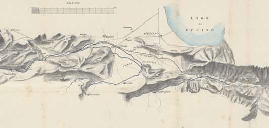La frontiera del regno bene può essere considerata divisa in cinque vallate: di Fondi e Scauri: di Ceprano e Sora: di Avezzano e Celano: di Aquila: degli Abruzzi marittimi. I monti che le separano sono erti e scoscesi […]. Più difficile è ancora il valicare i monti di San Donato e Balzarano per tramutarsi dalla vallata di Ceprano e Sora nell’altra di Avezzano. Per la valle di Roveto risalendo il Liri, v’è altro sentiero ma molto più lungo, che continuando difilatamente verso Capistrello conduce a Tagliacozzo, e voltando a levante per i piani Palentini mena ad Avezzano. Il quale ultimo sentiero, senza molta difficoltà, si può rendere transitabile per l’artiglieria di un corpo d’armata.