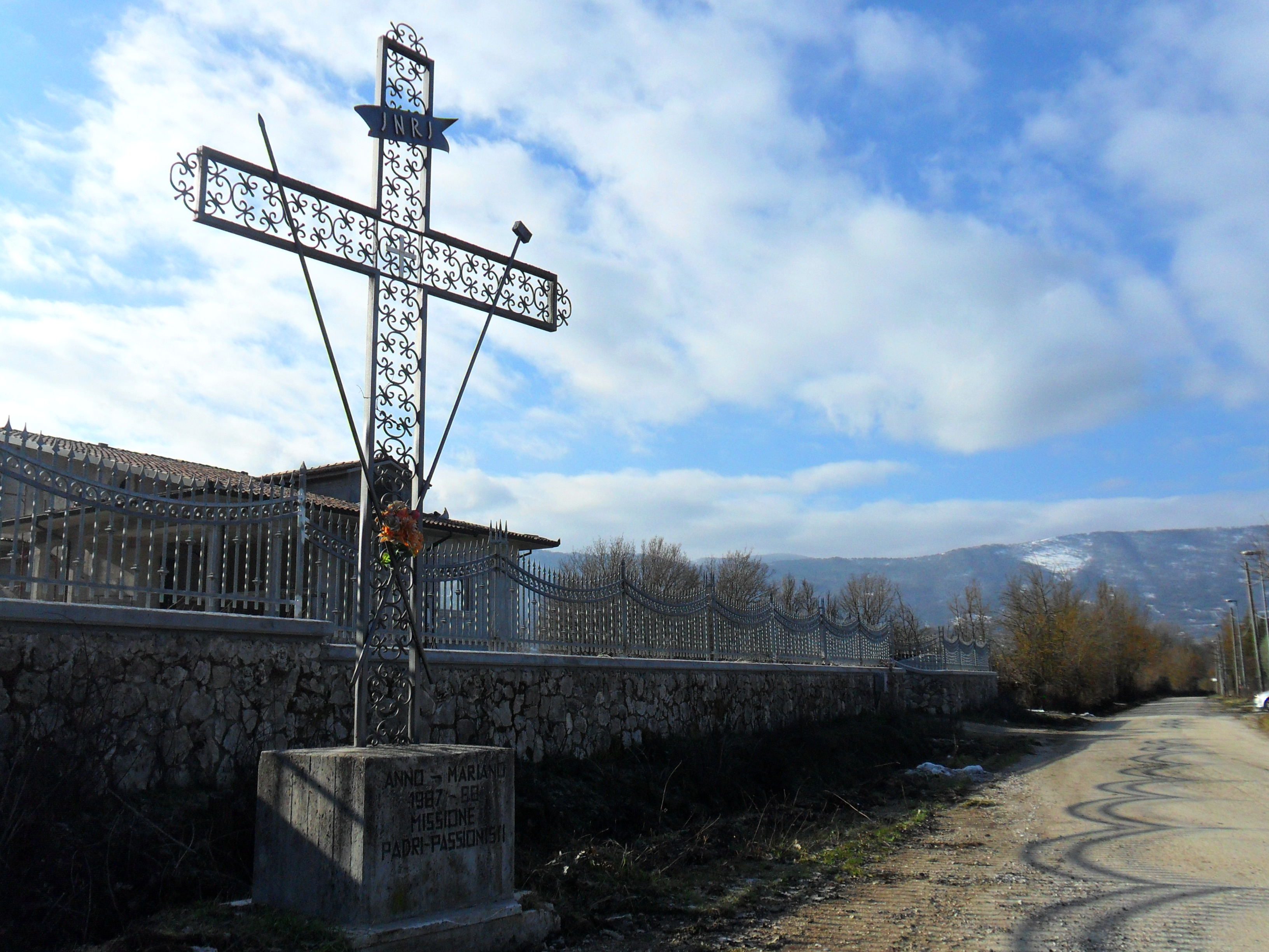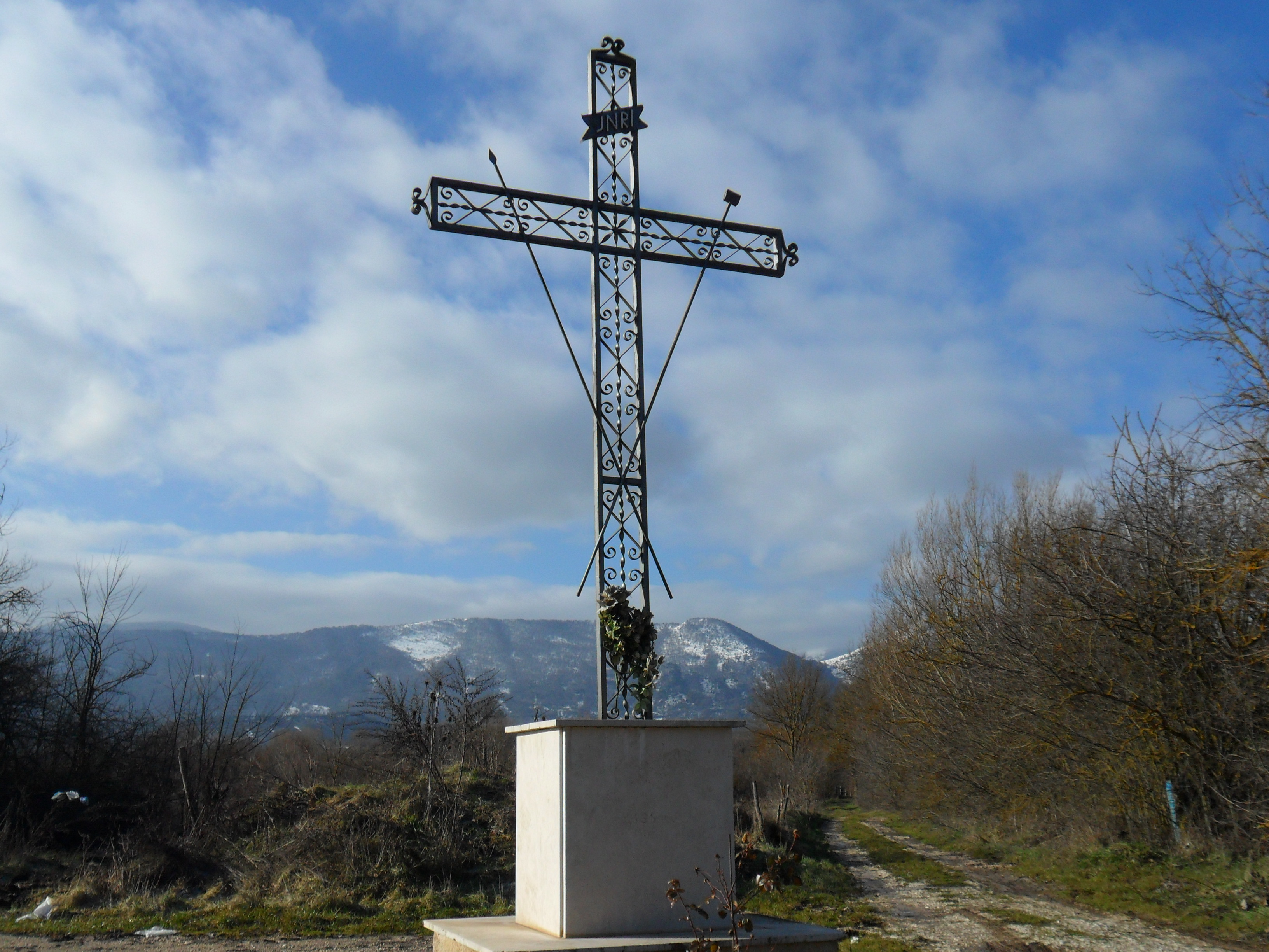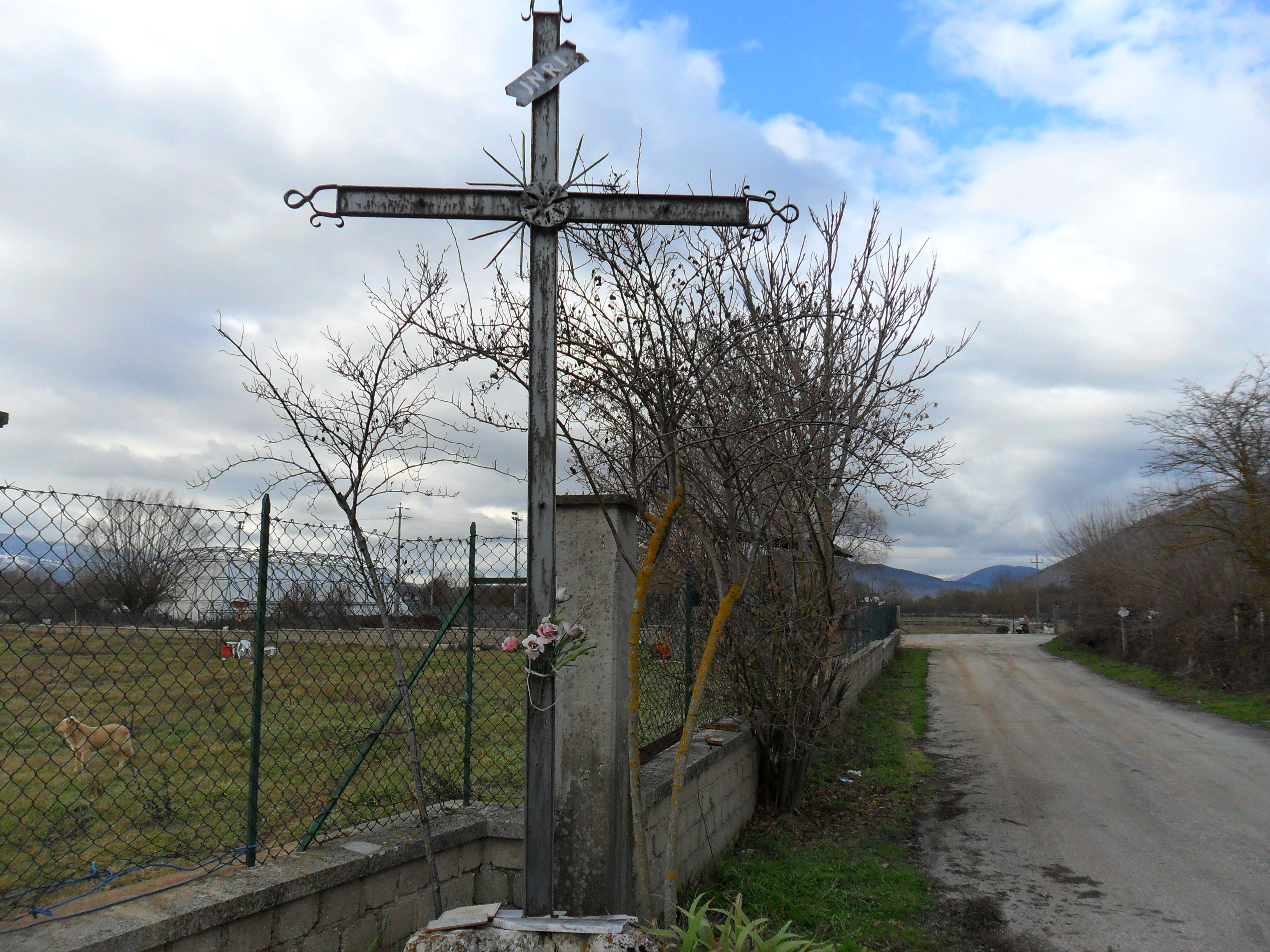 - Percorrendo via Paolo Marso in direzione della “Pro Loco”, a destra si incontra la croce che un tempo si trovava vicino alla fontanella e alla “Madonnina”. Purtroppo, la pietra posta alla base non riporta date, ma dai documenti fotografici del tempo si può ipotizzare che risalga alla fine degli anni ’ 30 del secolo scorso.