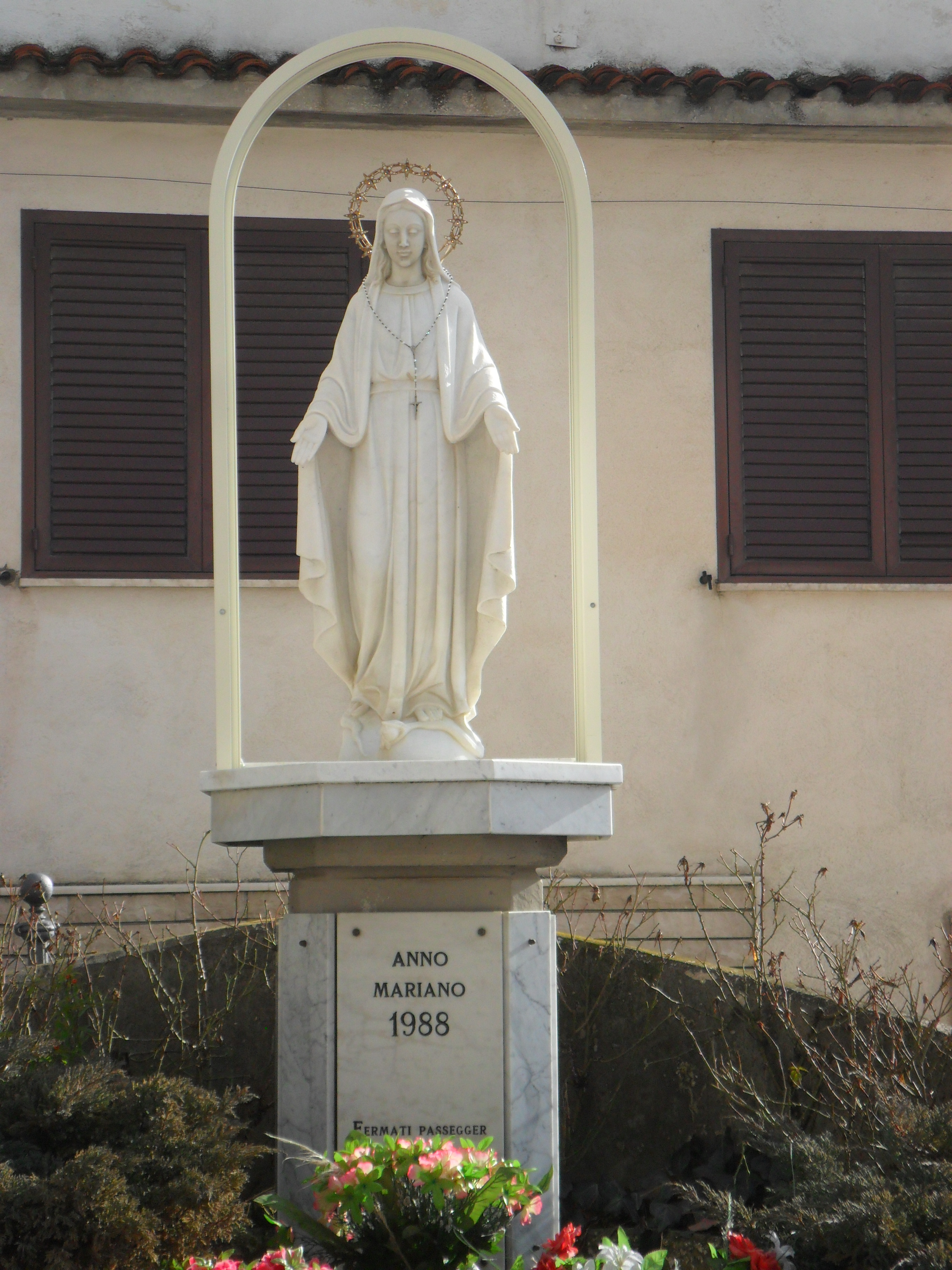 Lungo le strade del paese si possono notare ancora oggi diversi segni di autentica religiosità, tra cui due statue dedicate alla Vergine Maria. Quella che viene comunemente chiamata “Madonnina” si trova su Via Paolo Marso, all’altezza della biforcazione con via San Sebastiano; la seconda è invece collocata nello spazio attiguo all’ex sacrestia della “Chiesa Vecchia”.