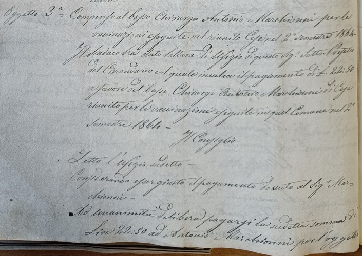 Nei documenti d’archivio locali si trovano molti riferimenti a nomine, paghe e istanze relative sia ai medici condotti che ai chirurghi designati per Cese. In uno dei documenti più antichi, inserito all’interno del Catasto del 1754, è presente un riferimento specifico all’utilizzo delle tasse “de’ cittadini” di quella che era allora l’Università delle Cese a favore del “medico di condotta” (ducati 20 annui) e del “chirurgo” (ducati 10 annui). La figura del chirurgo/cerusico è stata poi progressivamente inglobata e centralizzata a livello di capoluogo comunale, come dimostra la risoluzione del Decurionato[1] del 1825 in risposta alla richiesta di Antonio Rosati, “che domanda di esser ammesso al servizio di … chirurgo in Cese con soldo comunale, ed ha invitato i Signori Decurioni a deliberare analogamente”. A tale istanza, il Decurionato rispose: “Considerando che il chirurgo condottato in questo Comune è tenuto a servire anche il riunito di Cese, atteso che ne percepisce la mercede corrispondente. Considerando che quantunque volesse annuirsi alla richiesta del Rosati, le finanze più che cagionevoli del Comune non lo permettono. Vista la legge del 12 dicembre 1816[2], ha rigettata la pretenzione del Signor Rosati”. Stando alle rimostranze dei delegati locali, il servizio sanitario nella frazione non veniva al tempo svolto in maniera soddisfacente, se è vero che “il 28.10.1835 l’eletto di Cese A. Marchionni ed il parroco don S. Cosimati ricorrevano contro l’atteggiamento arrogante del medico De Clemente; contro quest’ultimo il marchese di S. Stefano diresse una pepata relazione evidenziando che lo stesso mostrava un orgoglio smodato, si rifiutava di visitare i poveri, gli abitanti di Cese ed i gendarmi delle prigioni, come certificato dal tenente A. Cafiero, il quale concludeva che il De Clemente non contava nulla in fatto di medicina”[3]. In una delibera del Consiglio municipale del 1855 si tratta invece la “Nomina dei Medici, e Chirurgi per Avezzano, e pel riunito di Cese”, su invito del Sindaco a nominare due professori per il capoluogo ed uno per la frazione di Cese, visto “che in questo Comune Capoluogo e nel riunito di Cese manca la condotta medica e cerusica”. Dopo aver proclamato come medici del Capoluogo Ferdinando Ruggiero e Antonio Cerri, il Sindaco dava mandato al “Consigliere di quella Borgata sig. De Amicis di fare la proposta, intesi i cittadini della stessa, per un sanitario in quel Comune e ne riferirà ad altra tornata, onde procedersi alla nomina”. Non si sono ad oggi trovate deliberazioni successive, in tal senso, ma la questione del medico condotto non deve essere stata di facile soluzione, in quegli anni, se si considera che nel 1868 i cittadini di Cese dovettero fare richiesta di un “medico a scavalco” che garantisse la presenza in paese almeno una volta a settimana. A tale scopo fu allora nominato il dottor Ambrogio Brogi, mentre qualche anno prima, nel 1864, si era attestata l’attività di Antonio Marchionni come “basso chirurgo”, opera per la quale era stato retribuito con 22,50 lire per il secondo semestre di quell’anno.