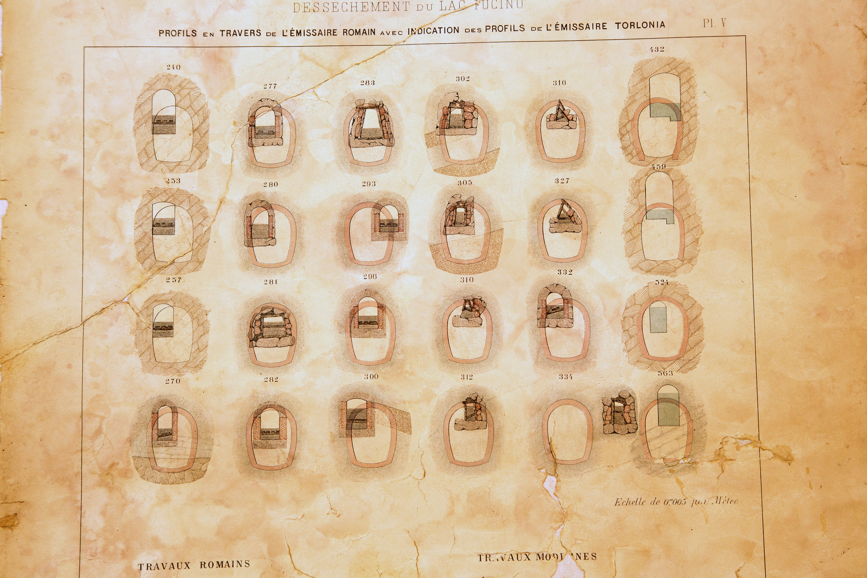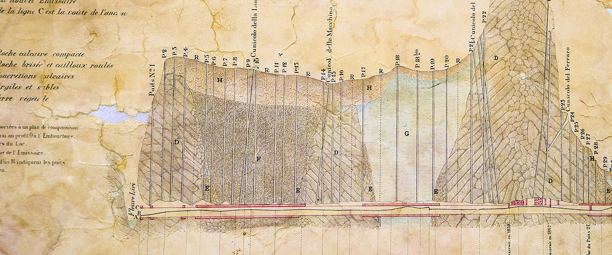 [1] Scrive Afan de Rivera: “Il metodo di sgomberare l’emissario per mezzo di un palco di legname fornito di rotaie per dirigere il cammino de carrettini, essendosi introdotto per la prima volta nel nostro paes,e richiedeva un certo tempo affinché i travagliatori si fossero assuefatti a tali novità”.
