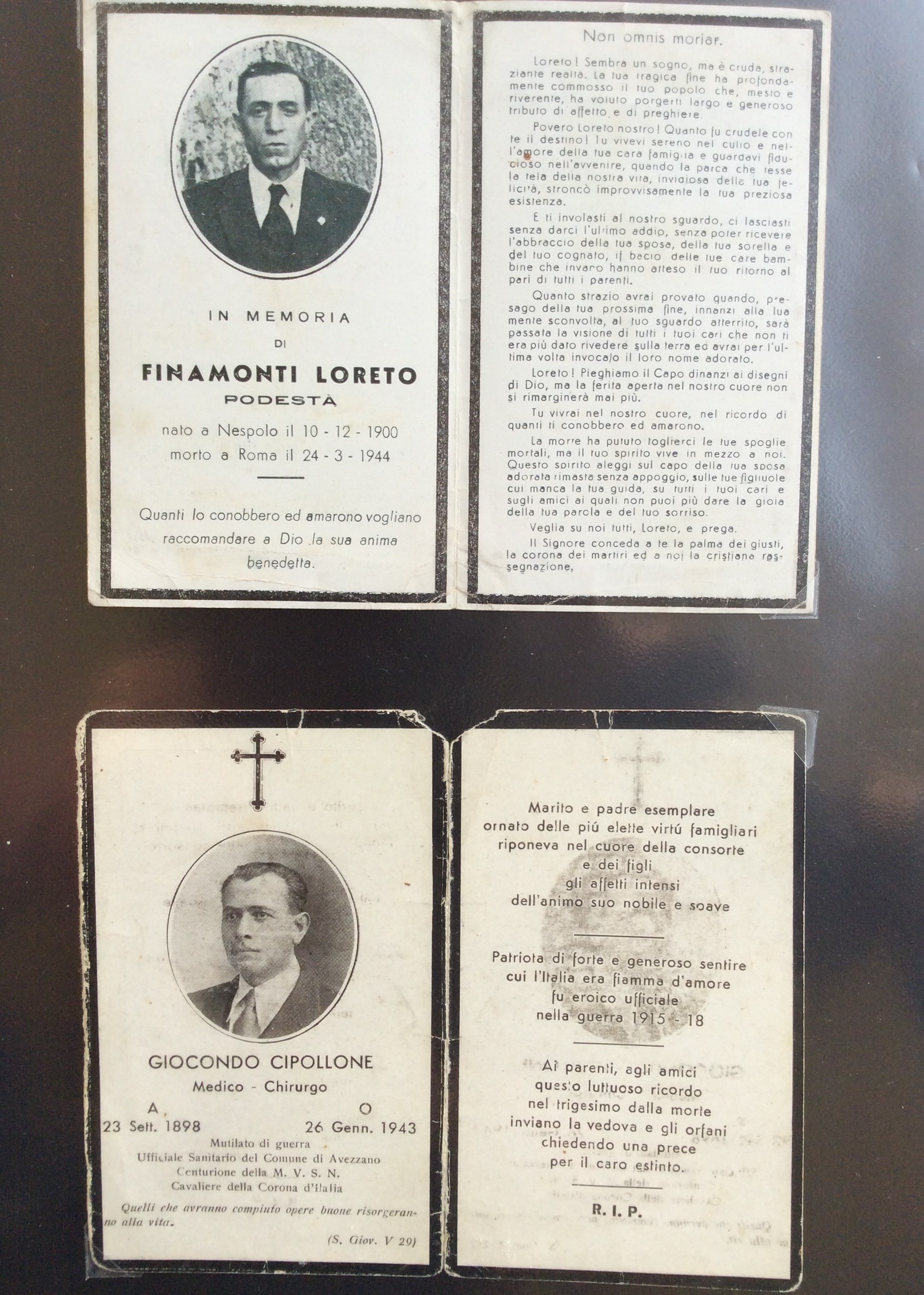 Dopo l’annuncio dell’armistizio firmato a Cassibile il 3 settembre 1943, molti prigionieri alleati fuggirono cercando rifugio ovunque se ne presentasse l’opportunità. Un giorno, in particolare, un nutrito gruppo proveniente dal campo di prigionia di Chieti viaggiava sul treno in direzione di Roma; lungo il tragitto, alcuni prigionieri riuscirono a praticare un’apertura all’interno del vagone di legno, così, quando il convoglio era in prossimità di una stazione, loro fuggivano a coppie, protetti dagli altri che provvedevano poi a nascondere l’apertura con una coperta. Arrivati in prossimità di Cappelle, anche gli ultimi fuggitivi abbandonarono il treno e due di loro raggiunsero a piedi la cima di Monte San Felice, dove s’imbatterono in alcuni pastori di Cese (all’epoca ve n’erano tanti). Vennero quindi accompagnati in paese e affidati a Maria Venditti, originaria di Capistrello ma sposata a Cese con Felice Torge. La popolana, nota come “Maria della Fonte”, decise di dare ospitalità ai due ufficiali e trovò un’altra sistemazione agli altri. La donna aveva al tempo 45 anni e gestiva un forno con annessa bottega di generi alimentari a cui si rivolgevano anche alcuni ufficiali tedeschi, ed in particolare un interprete che, dopo gli studi in Germania, aveva frequentato anche l’università di Bologna. Conoscendo l’italiano, dunque, questi riusciva a muoversi con una certa disinvoltura negli scambi con la popolazione locale. Con l’aiuto del parroco Don Vittorio Braccioni, Maria trasformò i due soldati in contadini locali; il prete impartì loro sommarie lezioni d’italiano e i due vennero avviati ai lavori nei campi, anche se non ne avevano esperienza. L’escamotage consentiva loro di rimanere nell’anonimato e confondersi con i contadini del posto. Assunsero anche proprie generalità: uno diventò Pietro Cipollone, l’altro Luigi Bruno e nelle loro tasche trovarono posto oggetti di uso locale, documenti falsi e “santini” di persone morte poco tempo prima. Tutto questo per rendere credibile la loro identità e fugare eventuali sospetti. Chi muoveva i fili dell’intricata matassa era la Venditti, donna coraggiosa e dotata di un alto senso di umanità ed altruismo.