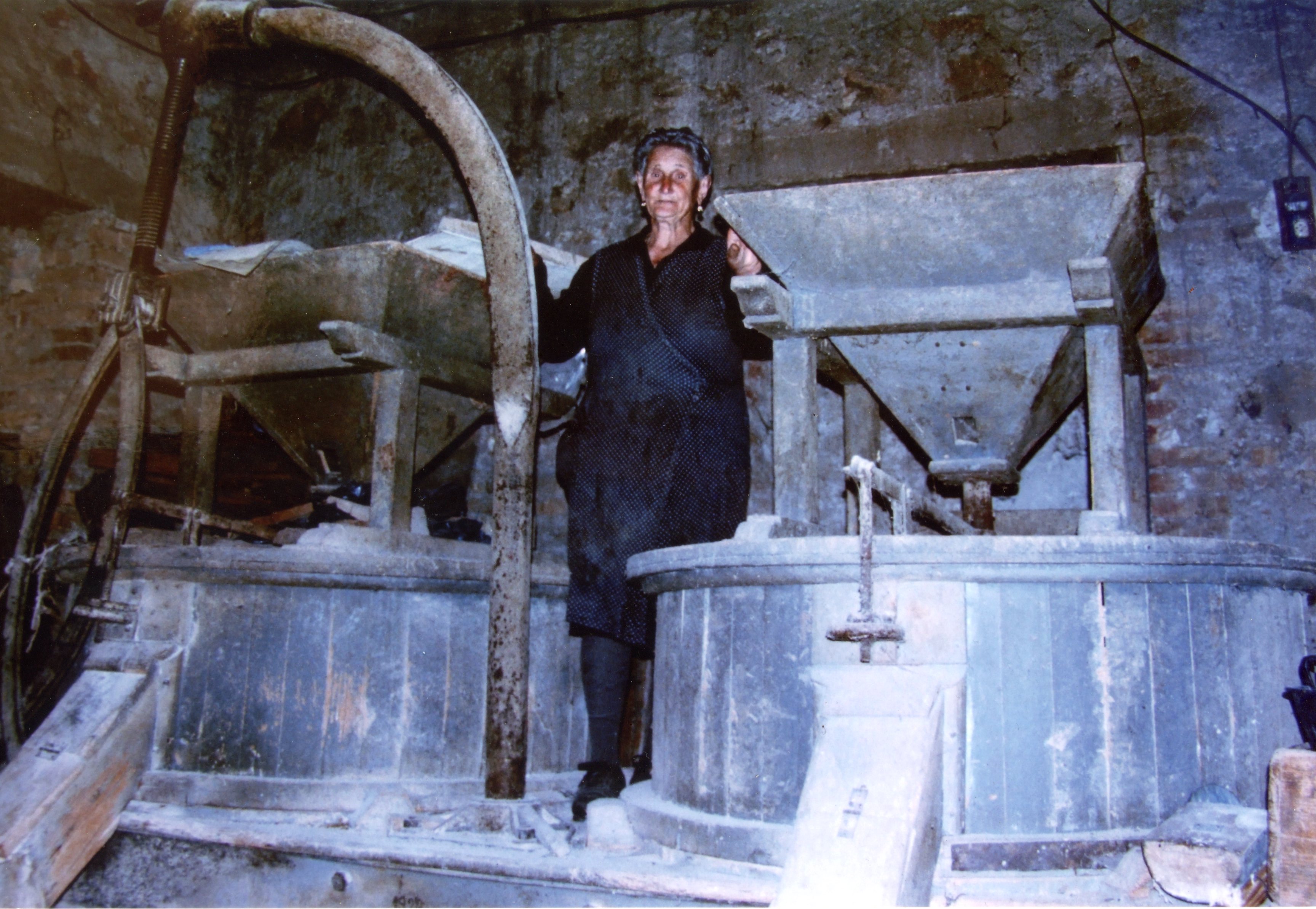 Una nota a parte, a proposito della mòla di Cese e dei suoi mugnai, va spesa per la mitica “‘Lisa la molenara”. Elisa Bianchi, moglie di Venanzio, era una grande lavoratrice dal carattere scanzonato, gioviale e sempre pronta a rispondere a tono a qualsiasi battuta di saluto. Molti la ricordano sempre intenta al suo lavoro di mugnaia, infarinata e con “jo zinalo e jo pannitto” bianchi come il suo cognome. Anche chi non ha avuto modo di conoscerla in attività può rivederla nella figura che ha impersonato nei presepi viventi del passato. Il fazzolettone infarinato come lo zinale, una porzione di farina dentro il sacco tenuto in testa senza l’aiuto delle mani e la “statera”(la bilancia manuale con l’asta mobile e graduata) infilata dentro un braccio. Ha seguito e curato l’attività con il marito fino alla fine e quando Menanzino ci ha lasciato, lei ha portato avanti l’attività solo per un paio di mesi. Poi, coadiuvata dal figlio Cesidio, impegnato in altra professione, ha deciso di non rinnovare la licenza e di chiudere l’attività della mola. Il mulino, da allora, è rimasto così com’era, magari abbandonato a se stesso e ricoperto da farina, polvere, ragnatele e tavole varie. Per noi che abbiamo vissuto da vicino questa attività e le persone che la gestivano, la sua chiusura rimane una nota dolente. Il motivo è soprattutto nel fatto che esso era e rimane una porzione storica della vita dei costumi e della storia di Cese e, senza cadere nelle considerazioni fantasiose, il luogo e le cose che racchiude e conserva potrebbero far parte di un museo da rivalutare e conservare tra i pezzi più interessanti della nostra comunità e dell’identità che ci differenzia dagli altri paesi. Anche le sue secolari corna, infisse sopra la porta d’ingresso, sono mitiche e sempre le stesse, magari pronte a scongiurare altre vie e differenti decisioni.