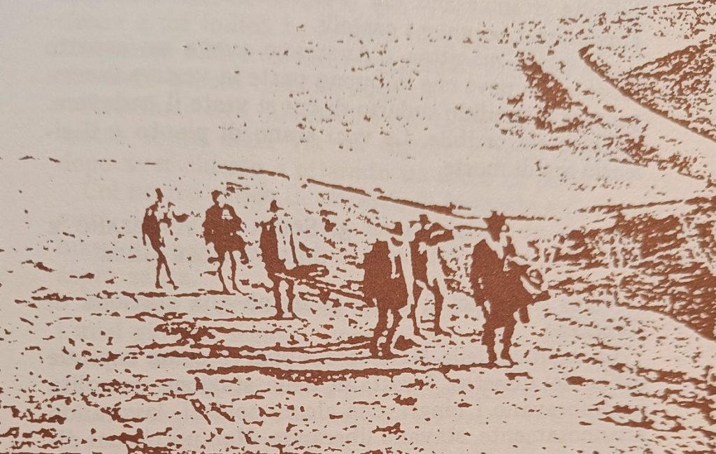 “Andranno alle Cese” e mi indicò la località sulla carta topografica. “Avranno molto da fare” soggiunse; “non ho potuto mandare ancora nessuno laggiù”. Col nostro carico di attrezzi, di farmaci e di provviste, traversata una via fiancheggiata da due ammassi di ruderi informi, ci incamminammo sopra una aspra salita.