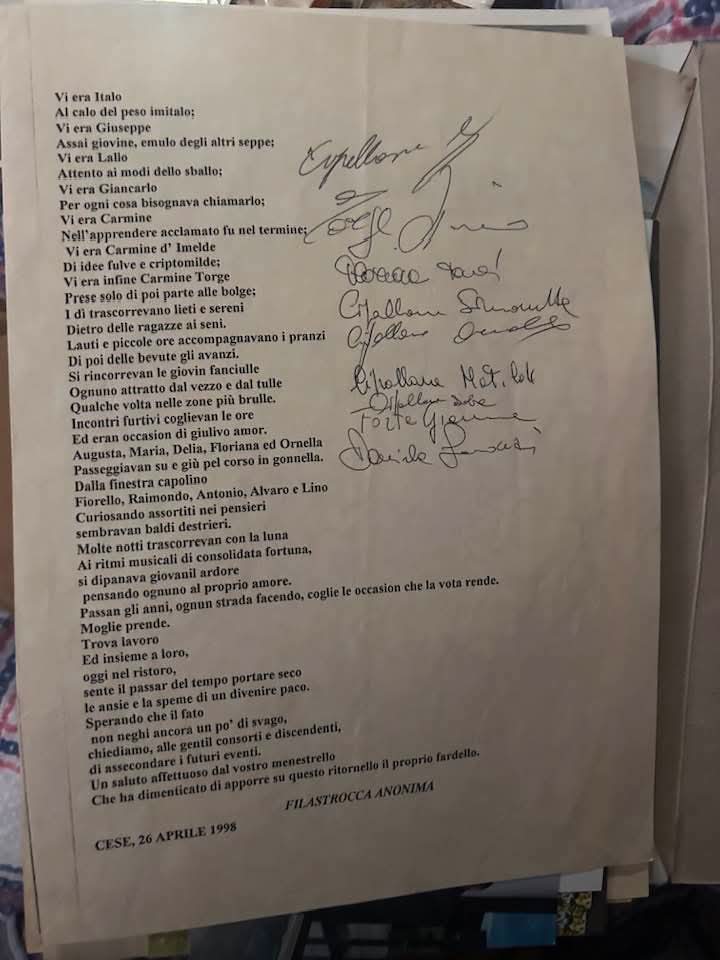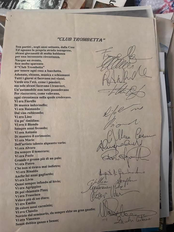 Nella prima metà degli anni Settanta si è sviluppato a Cese un fenomeno del tutto particolare e, a suo modo, rivoluzionario, quello dei “club”. Si trattava in sostanza di ritrovi di amici, comitive, gruppi organizzati in forma di circoli informali più o meno aperti e con vocazione diversa, creati dai giovani del posto in risposta alla mancanza di divertimenti diversi dai classici bar e in alternativa alle occupazioni ed ai passatempi tradizionali. Soprattutto, al tempo i club rappresentavano la risposta ad una ricerca di libertà che sbatteva spesso contro le varie forme di controllo sociale e contro l’occhio vigile dei genitori, dei familiari e in generale dell’autorità. Dai racconti dei protagonisti si capisce come, tuttavia, non fosse la voglia di trasgressione ad animare questi ritrovi, quanto il desiderio di uno spazio proprio in cui stare insieme, affermarsi, ascoltare musica e magari ballare anche tra ragazzi e ragazze. Già, perché prima di allora le feste in casa erano quasi sempre a compartimenti stagni. “Quando c’era il compleanno di una ragazza, ad esempio, solitamente i maschi non erano invitati, o se lo erano, quasi mai potevano ballare con le ragazze, a meno che non fosse già in corso un fidanzamento e quindi la relazione fosse acclarata”. C’è da dire, al riguardo, che non tutti i neonati club erano a presenza mista; anzi, la maggior parte era frequentata solo dai ragazzi, sia per un retaggio storico che per l’avversione dei genitori. “Magari le ragazze provavano a partecipare, ma spesso succedeva che dopo un po’ le madri e i padri negassero loro di continuare e le tenessero ancor più sotto controllo”. Prima dei club degli anni Settanta, d’altra parte, c’erano stati i ritrovi dei ragazzi, formatisi a loro volta all’ombra delle vecchie cantine dei padri. “C’era ad esempio il “Pecor club” sopra alle Mandre, alla fine dell’attuale via Machiavelli, dove però si ritrovavano quasi solo per le cenette. Si può dire che loro siano stati i primi, ma i club veri e propri sono arrivati dopo”. L’elemento di distacco dei club degli anni ’70, oltre alla possibile – per quanto limitata – presenza femminile, era infatti rappresentato dalla centralità della musica. Tra gli altri c’era il club “Gilera”, c’era il club “Trombetta”, spostatosi in un secondo momento dalla proprietà del nonno di Claudio, Anna, Alba… Marchionni alla casetta all’angolo tra Via Pascoli e Via Petrarca, e c’era il club “Ferraro”, chiamato così dal nome del proprietario dello stabile preso in affitto all’angolo di Via Monte San Felice, ossia il fabbro ferraio Francesco Cicciopastore. “Quando lui è andato via per trasferirsi in una casa di riposo, abbiamo preso in affitto casa sua, con contratto regolare. Era una casetta a due piani; a piano terra ci ritrovavamo, ballavamo, c’era una pila di giradischi, mixer, dischi… tutti cantanti e gruppi d’avanguardia: Deep Purple, Genesis, Led Zeppelin, Pink Floyd. Merito di Fiorello, ovviamente. È andato avanti per sette-otto anni, da inizio anni ’70; quando abbiamo cominciato eravamo ragazzotti, diciottenni o quasi”. Il club “Ferraro”, in particolare, era ricercato perché frequentato anche dalle ragazze. “Al club Trombetta ad esempio erano tutti maschi, allora quando volevano organizzare qualcosa con le ragazze venivano da noi o ci chiedevano di andare da loro portandole con noi. In occasioni speciali come il Capodanno, poi, con una piccola quota si univano anche i ragazzi e le ragazze più grandi, che magari non avevano la possibilità di andare a divertirsi fuori e quindi venivano da noi per trascorrere una serata in allegria con gli amici e i fidanzati o le fidanzate. Sì, sicuramente qui sono nati i primi approcci, ma non erano le “case del peccato” come al tempo sono state dipinte (anche dall’altare)”. Nei club, d’altra parte, sono anche nati i primi amori e in molti casi sono andati avanti trasformandosi in famiglie, e questo non può che essere positivo, oltre che romantico.