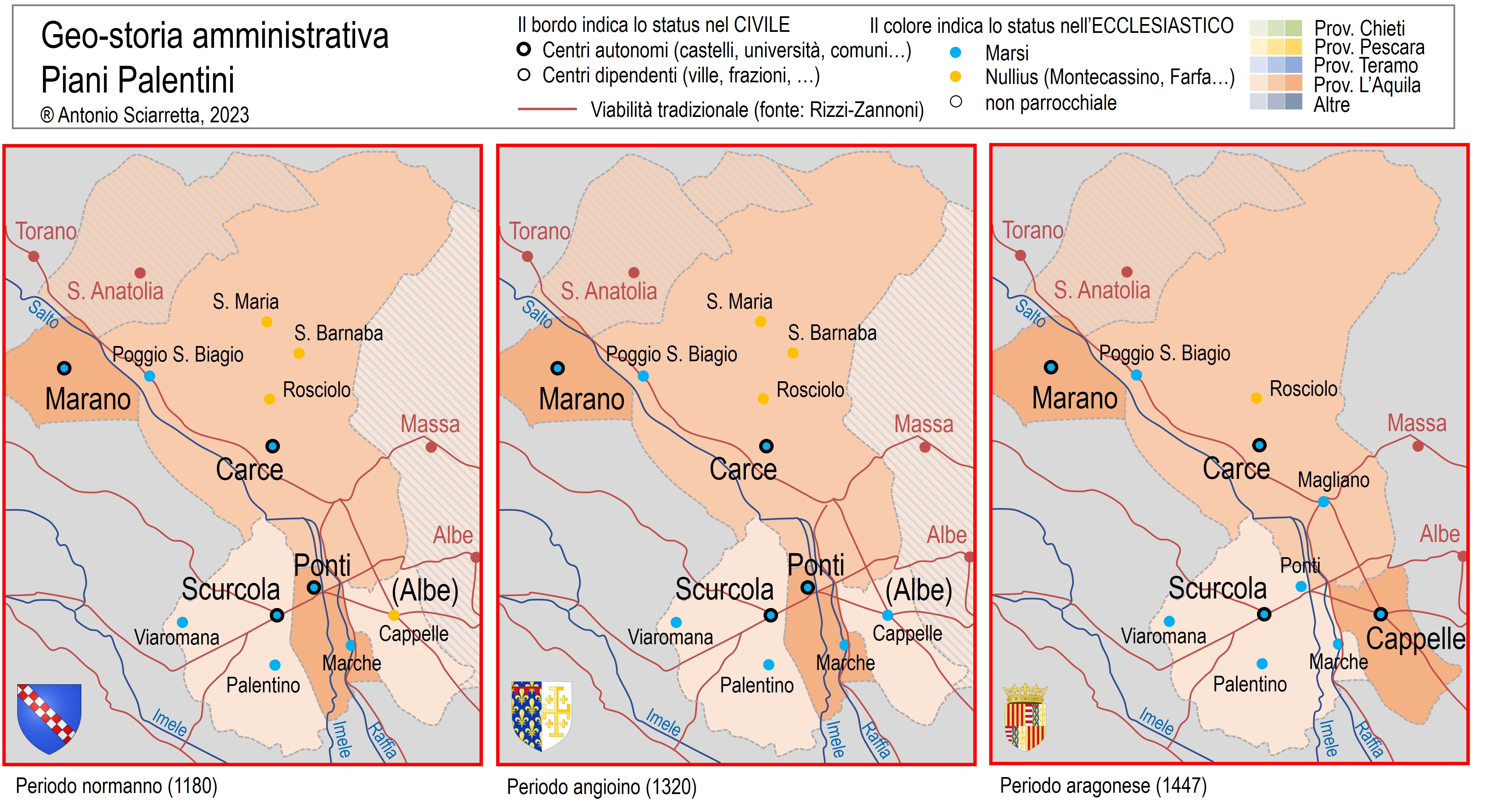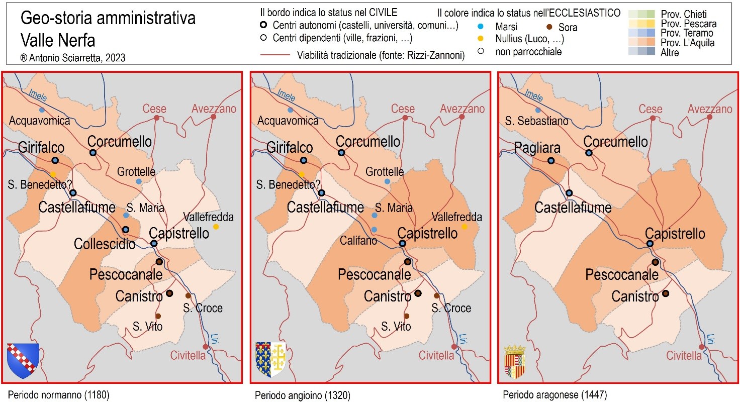 [11] Ad esempio Visignum, l’antica Bisegna, viene indicata come feudo di Simone di Capistrello nel Catalogo dei Baroni del 1152, mentre nel Catalogo del 1173 il castello di Canistro risulta feudo di Crescenzo di Capistrello.