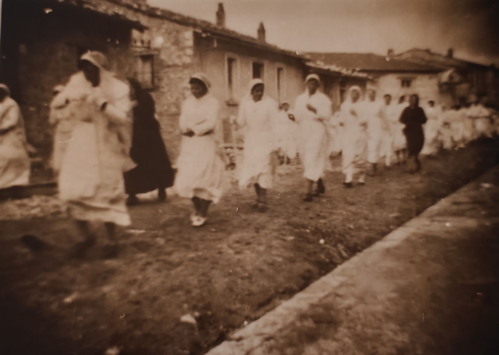 Oltre alle confraternite, negli anni a cavallo tra le due guerre avevano certamente una particolare rilevanza i gruppi giovanili delle “Figlie di Maria” e dei “Ragazzi di San Tarcisio”. In relazione alle prime, è noto che la “pia unione” facesse parte di un ampio movimento attivo in Italia già dalla seconda metà dell’800 con il fine di “proteggere l’innocenza delle giovanette, difendere la loro tenera età dal pestifero contagio del secolo, e avviarle per via di consigli e pratiche di religione all’esatto adempimento dei doveri che hanno verso Dio, verso il prossimo e verso se stesse; non che al conseguimento di una soda virtù cristiana sotto la custodia fedelissima dell’Immacolata Regina del Cielo e dietro i luminosi esempi della tredicenne verginella sant’Agnese”[3]. Le ragazze vi partecipavano a partire dagli 11-12 anni e, in ossequio al requisito di “verginità”, potevano rimanervi fino a quando non si sposavano (sebbene esistessero anche figure-guida pensate per le donne che proseguivano il percorso anche dopo il matrimonio). Da testimoni come Teresina Di Matteo sappiamo che le riunioni della “pia unione” si tenevano generalmente la domenica, che l’impegno e la partecipazione erano tenuti in alta considerazione da tutte le ragazze e che spesso don Vittorio organizzava incontri e passeggiate all’aperto, in primis presso la chiesetta della Madonna delle Grazie. Dalle testimonianze fotografiche sappiamo invece che chi diveniva a tutti gli effetti “figlia di Maria”, dopo la prima fase da “aspirante”, riceveva la relativa medaglia con l’incisione del simbolo associazionistico su un lato e la scritta “Sono figlia di Maria” sull’altro. Sappiamo inoltre che le appartenenti alla “pia unione” partecipavano con particolare devozione alle processioni del paese, in primis quella alla Madonna delle Grazie, in concomitanza della quale indossavano un abito bianco e la veletta sul capo dello stesso colore. In testa alla stessa processione sfilava lo stendardo dell’unione riccamente decorato, di cui è rimasta traccia fotografica nella versione del 1936. Si sa, tuttavia, che un altro stendardo delle Figlie di Maria era presente già negli anni ’20, stando ad alcuni registri dell’archivio diocesano di Avezzano nei quali lo stesso viene elencato tra i benefici della parrocchia di Cese assieme allo stendardo della SS.ma Trinità e a quelli del Sacro cuore di Gesù, della Visitazione della Beata Vergine e della Madonna delle Grazie (inventario del 1° dicembre 1929)[4]. La presenza processionale delle “Figlie di Maria” a Cese ha alcune analogie con altre manifestazioni religiose marsicane ed abruzzesi. Si sa, ad esempio, che nelle processioni di Pereto sfilavano «per primi gli “Angioletti” ovvero i bambini, in alcuni casi vestiti da angeli con tanto di ali e aureola. Erano seguiti dalle “Figlie di Maria”, ovvero le donne non sposate. Era un’associazione, simile ad una confraternita. Le “Figlie di Maria” erano precedute da una stennardina (un piccolo stendardo) raffigurante la Madonna al centro con una fanciulla in ginocchio alla sua sinistra. Il tutto è racchiuso in un ovale e sopra questo ovale si trova scritto: SS IMMACOLATA. Le adepte erano contraddistinte da un nastro azzurro, mentre le novizie avevano un nastro verde»[5]. Particolarissima, anche se solo parzialmente legata alle “Figlie di Maria”, era anche la “processione delle verginelle” che si teneva a Rapino, in provincia di Chieti, in occasione della festa della Madonna del Carpineto. «Attualmente la Processione è aperta dai più piccoli, fanciulli e fanciulle anche di tre anni, detti “Angioletti”, seguiti dalle verginelle, vestite di bianco e rosa, ma anche celeste, e ornate d’oro. Subito dopo sfilano il gruppo dei “Pagetti” e, a chiudere il corteo, le “Figlie di Maria”, ragazze vestite di bianco e azzurro che aprono la via alla statua della Madonna. Tutti una volta avevano capelli arricciati in segno di illibatezza, e nella processione sfilavano anche due buoi bianchi»[6].