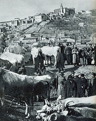 In alcune delle fiere che si tenevano nei paesi vicini si recavano con i contadini e gli allevatori anche le rispettive mogli, le massaie e loro congiunti, magari nella prospettiva di scambiare prodotti di varia natura. Quando si trattava di vendere o acquistare un capo di bestiame, per abbreviare le trattative si faceva spesso ricorso a personaggi locali che avevano esperienza nel campo. Se la trattativa avveniva in paese, i mediatori o “sensali” si incontravano preliminarmente con le parti interessate all’interno delle stalle, o con l’acquirente in separata sede. Poi si rivedevano tutti nelle stesse stalle davanti agli animali in vendita, che venivano così esaminati e stimati minuziosamente. Il venditore ne esponeva l’integrità fisica e l’età, con la verifica manuale della dentatura (teneva, infatti, aperta la bocca con due mani), poi si parlava eventualmente della quantità di latte prodotto, dell’addestramento al lavoro e di altri fattori. Una volta che il proprietario si era espresso sulla somma richiesta, l’acquirente verificava a sua volta le caratteristiche dell’animale e di consueto provava a sminuirne qualità e facoltà per ottenere una riduzione di prezzo. A turno, oppure apertamente, il “sensale” (che in precedenza aveva già ricevuto indicazioni in merito) si avvicinava all’una e all’altra parte parlando sottovoce. Nel momento in cui riceveva i rispettivi benestare, o quando le distanze sul prezzo erano molto vicine, afferrava le mani dei due contraenti e le univa in un vincolo che era doveroso mantenere. La parola data a quel punto valeva più di un atto legalmente registrato e nessuno dei due poteva tornare indietro, pena lo smacco pubblico che ne sarebbe scaturito. L’acquirente era quindi dovuto a versare un acconto importante (la caparra) e in caso di mancato adempimento dell’accordo, l’importo stesso doveva essere raddoppiato “per legge”. Erano queste le modalità e le norme che si rifacevano ad antica consuetudine e che divenivano legali in caso di conflittualità. Ciò valeva nel chiuso di una stalla, all’aia, sui campi, in piazza, ma specialmente durante le fiere che, oltre ad allevatori e sensali, richiamavano commercianti, compratori privati, curiosi, speculatori e i cosiddetti “zingari”, che non sempre erano i nomadi.