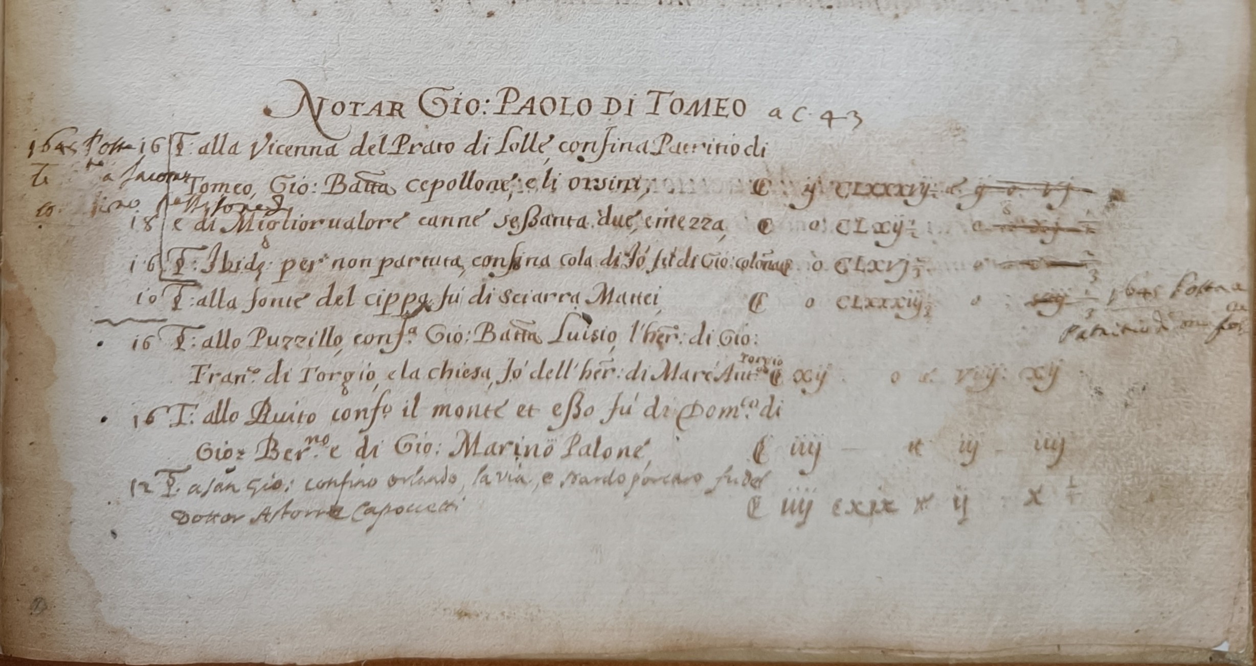 [1] Nel catasto del 1616 sono presenti anche altri due “Tomei”: Patritio di Tomeo e Martio di Tomeo. Più avanti, si leggerà di un figlio del notaio Giovanni Paolo di nome Antonio.