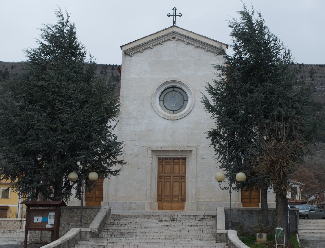 Tra il 1945 ed il 1947 si sarebbero poi susseguite diverse richieste ed istanze, relative sia all’assegnazione di aree edificabili in permuta di quelle espropriate per la ricostruzione dell’edificio sacro, sia al riconoscimento di fondi per la riparazione dei danni bellici, sia – ancora – all’ultimazione dei lavori successivi all’inaugurazione del 1946. Posteriori a quest’ultima sono infatti la facciata, la scalinata, il pavimento, le balaustre, gli altari, le nicchie per i santi e la sagrestia. Inizialmente, come testimoniato, le pareti esterne non erano rifinite e c’erano solo due porte, quella alla destra della facciata principale e quella vicino al campanile. La chiesa attuale è a tre navate, quella centrale è più alta delle laterali ed ha otto finestre su ogni lato con arco a tutto sesto. Le navate laterali hanno un piccolo altare sulla parete di fondo con le statue del Sacro Cuore e dell’Addolorata; sono state invertite di posizione nel 2000, anno in cui è stata ricavata, sotto l’altare di destra, un’urna trasparente che contiene l’immagine del Cristo morto. Su ogni parete laterale vi sono due finestre e quattro nicchie per i santi. L’abside, restaurata nel 1965 dal pittore Orlando Vietri, è ornata da motivi orientaleggianti, a mo’ di stoffa di damasco; al centro è il tabernacolo, e sopra una nicchia fra due figure di angeli che sembrano elevare l’immagine della Madonna (copia dell’opera originale di Andrea De Litio). Originariamente l’abside riceveva luce da tre grandi finestroni, chiusi nel 1966 per permettere la costruzione della sala parrocchiale e della casa canonica, ultimate nel 1969 a ridosso della chiesa stessa. Il catino absidale è abbellito da finte lesene che convergono in alto, verso la figura della colomba, simbolo dello Spirito Santo. Al suo interno e per tutta la navata centrale corre un fregio in stile ellenico, sovrastato da una decorazione in finto rilievo. Nell’abside è murata una piccola campana che ha resistito al terremoto e che tuttora viene suonata prima che inizi la messa, come è di costume a Cese. L’altare maggiore, la sede ed i gradini sono in marmo bianco; parte del materiale è quello del maestoso altare posto in opera con i due laterali nel 1950, a definitivo completamento della chiesa. Nel 1975 il presbiterio e l’altare sono stati trasformati in modo da conformarli alle direttive del Concilio. Nello stesso anno i muri perimetrali e tutte le colonne sono stati rivestiti con lastre di travertino oniciato. L’abside, le due colonne della balaustra ed i muri a ridosso degli altari sono stati invece rivestiti con lastre di pietra pregiata del Marocco alte un metro e mezzo. Nel 1975 è stato anche disfatto il pavimento in mattonelle per sostituirlo con uno in pietra di Trani, mentre il corridoio centrale, il pavimento del presbiterio e quello della sacrestia sono stati rivestiti in pietra rossa. Nel 1979 sono state elettrificate le campane. Il 21 settembre del 1986 è stato posto sulla facciata principale, precisamente dove si trovava un rosone a vetri che dava luce all’interno, un mosaico che riproduceva l’artistica Immagine della Madonna del De Litio. Il 18 agosto del 1991, invece, nella parte interna dove era l’originario rosone è stata collocata l’opera di Mario Petracca raffigurante la scena evangelica delle Beatitudini. Il 18 maggio 2002 è stato installato nel campanile un sistema computerizzato che, fra le altre funzioni, permette alle campane di scandire il tempo nelle ore diurne. Già allora erano evidenti alcuni problemi a cui era necessario porre rimedio. “In questi ultimi tempi – scriveva lo stesso autore – la chiesa parrocchiale comincia a manifestare inevitabilmente i segni del suo mezzo secolo di vita; si notano, infatti, alcune macchie causate da infiltrazioni d’acqua e crepe di varia natura. Da una prima ispezione tecnica effettuata recentemente, sembra che alcuni legni che sostengono il tetto siano stati attaccati da un parassita che ne sta compromettendo la tenuta. In attesa di relativi esiti, si stanno studiando misure atte a garantire la stabilità della chiesa e l’incolumità dei parrocchiani”. In seguito, tra il 2006 e il 2007, sono stati eseguiti importanti lavori di rifacimento del tetto in legno con sostituzione del manto di copertura in laterizio. Nel corso dello stesso intervento, è stata sostituita l’intera pavimentazione, sono state rimosse le lastre di pietra di rivestimento ed è stata rinnovata l’intera pittura interna, incluse le decorazioni dell’abside, delle pareti, del soffitto e degli altari laterali. Tra l’altro, una parte delle stesse decorazioni è stata poi rimossa, plausibilmente su richiesta delle autorità di soprintendenza (qui alcune fotografie comparse per un breve periodo sul sito web dell’impresa affidataria e poi rimosse); l’effetto finale è risultato così una sorta di compromesso stilistico soggetto, come sempre, a critiche e giudizi contrastanti (si ricorda a riguardo un incisivo commento ironico scritto in dialetto da Renzo Cipollone). Altre decorazioni sono state aggiunte o modificate negli ultimi anni, così come la disposizione del tabernacolo (tornato al centro dell’altare solo recentemente) e altre variazioni minori.