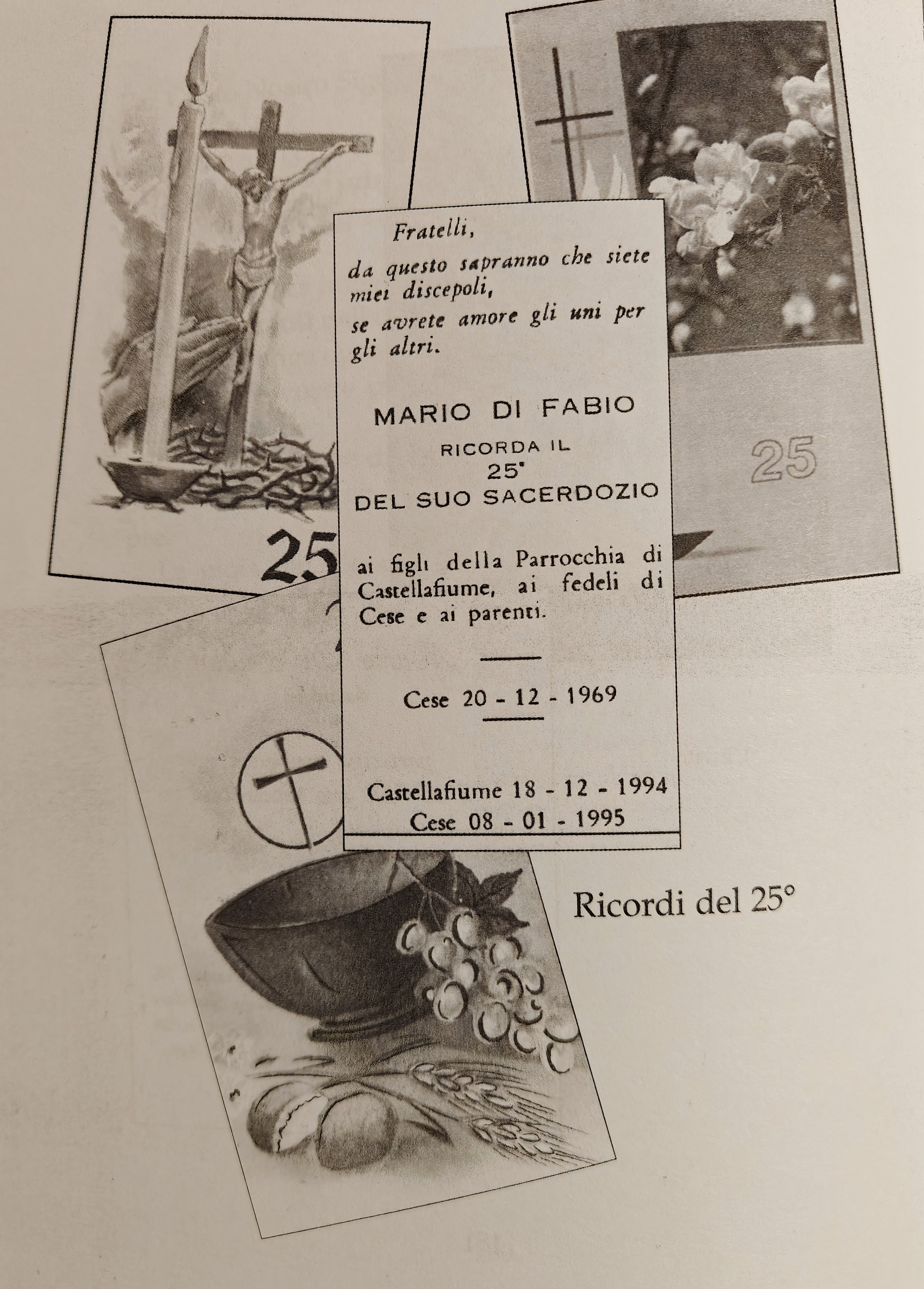 In occasione del suo venticinquesimo di ordinazione sacerdotale, i familiari di padre Mario avevano preparato un bel canto, eseguito al ristorante alla presenza dell’allora vescovo Armando Dini. Il testo era il seguente: