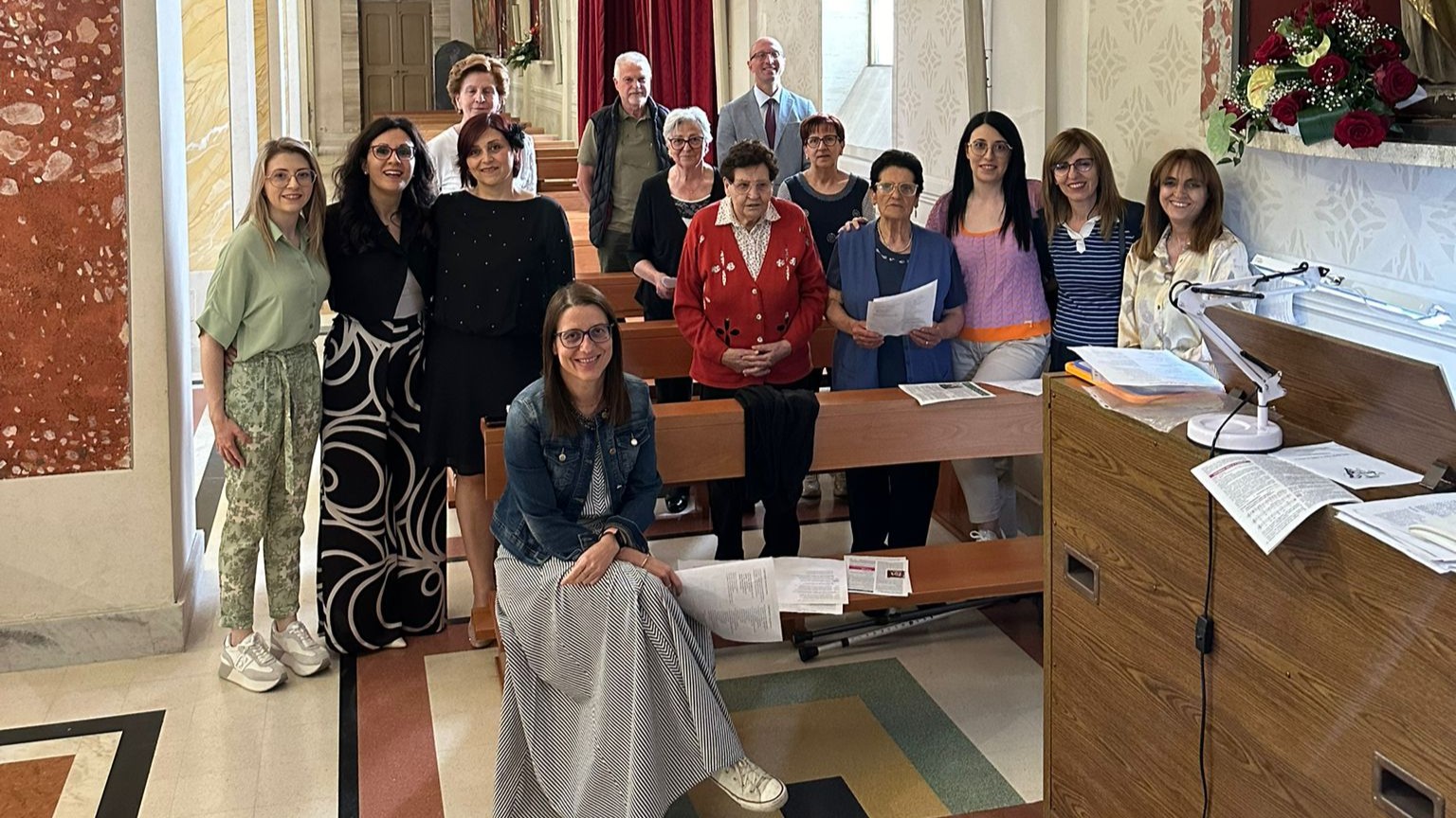 La stessa Manuela ricorda di aver iniziato a suonare l’organo in chiesa a cavallo tra il 1995 e il 1996: “Sostituivo Silvia quando non poteva venire a Cese, con il patto che mai avrei suonato nelle occasioni solenni, che mi mettevano una certa ansia. Accordi rispettati fino al matrimonio di Franco e Caterina, il mio ‘battesimo’. Conti alla mano, sono passati 30 anni: è un servizio che adoro e che condivido con Arianna, alla tastiera quando non ci sono. Credo di parlare per entrambe quando dico che non ci dispiacerebbe avere un sostituto a nostra volta. Non so se a Cese qualcuno suoni il pianoforte: qualora ci fosse sarebbe il benvenuto! Credo anche che per il mix generazionale, che si riflette in parte del suo repertorio e nella custodia delle tradizioni, e per il vissuto che lo ha portato fin qui, il nostro coro sia davvero speciale. Oltre che pronto ad accogliere chiunque ami cantare insieme agli altri”. Arianna, dalla sua, ha bene in mente il giorno in cui è entrata a far parte del coro parrocchiale. “3 giugno 1990. È il giorno della mia prima comunione, “soltanto” 36 anni fa! Le catechiste avevano deciso, dopo una breve preparazione, di farmi cantare un pezzo da sola… con Isaia all’organo, le ragazze di allora a dare manforte e gli occhi commossi di Clara. Ricordo… di lì, appena ragazzina, il contralto della messa di Santa Cecilia sempre con le signore e il loro sapiente ‘statte vicino a nnu e arrecchia’. E poi le domeniche, le feste, le cerimonie e, si sa, i momenti meno lieti. Raramente all’organo, più spesso, indegnamente, a dirigere. Le volte in cui si ride durante le prove e quelle (tante, tantissime) in cui ci si commuove, anche durante le celebrazioni. E ricordo sempre l’immancabile volontà di far bene per chi, e Chi, ci chiede di esserci. Con qualche trasferta e il puntuale desiderio di accompagnare, in parrocchia, la comunità nelle occasioni più importanti. Io quasi non riesco ad immaginarlo più un altro modo per stare a messa a Cese se non dentro questo gruppo in cui si vivono la gioia di essere parte, l’amore per Colui al quale si canta, l’amore per coloro con cui si canta”. L’attuale formazione poggia sulla presenza di diverse figure storiche, di graditi ritorni e, fortunatamente, di nuove adesioni, come attestato dalle foto recenti, che testimoniano la partecipazione del coro a tutte le celebrazioni religiose di Cese, non solo quelle ordinarie e straordinarie nella chiesa madre, ma anche le uscite a “Santa Barbara”, a “Santo Rocco”, alla Madonna delle Grazie per Sant’Elisabetta… Segno di una presenza costante e radicata, frutto di un impegno che non cede alle difficoltà del tempo e che si colloca, con grande merito, lungo il tracciato di una scuola secolare.