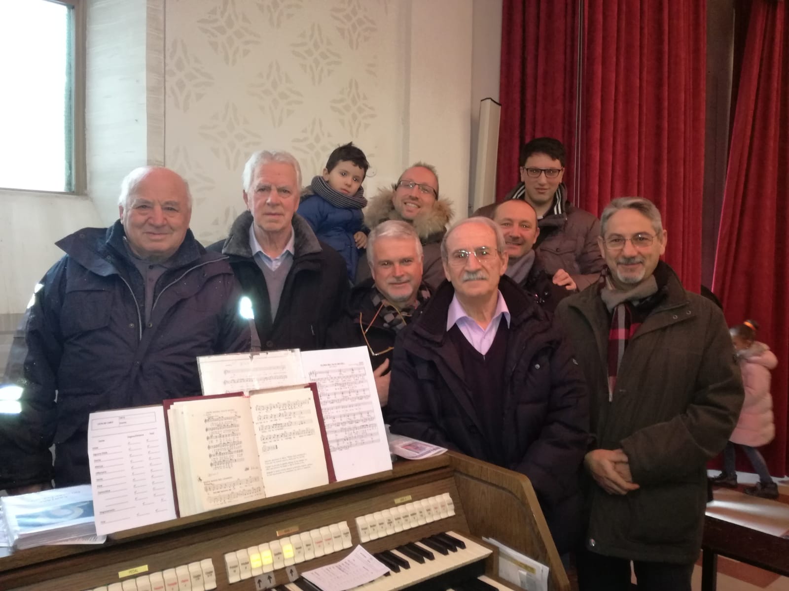 L’ultima a suonare tra le religiose è stata suor Gesuina”, ricorda Clara, “poi ha iniziato Vincenzo Patrizi e poi ci sono stati Isaia Cipollone di Pietro e anche Rosanna Petracca, e al coro Roberta e tutte quelle più giovani. Noi nel frattempo ci eravamo sposate, avevamo la nostra famiglia ma io come altre sono sempre andata a cantare, anche dopo… pensa che quando ha cantato messa padre Venanzio, nel 1967, ho lasciato Franco piccolissimo e sono andata al coro. Ho dovuto smettere solo quando Emilio è caduto dal terzo piano ed è stato tanto tempo in ospedale, e poi con le stampelle per più di un anno. Poi nel 1990, dopo che morì Franco, andai a fare la via crucis, e venne don Angelo. Doveva cantare messa Antonio Marchionni di Secondino e don Angelo mi disse: ‘Perché non rifacciamo il coro per Santa Cecilia?’. E lì abbiamo ricominciato, richiamando anche quelli di prima: Ermanna, Giovannina, Enrico, Augusto, Peppino Di Fabio, Rodolfo… ce ne venivano tanti. Se non era per la fede, non avrei fatto niente; e poi quando si parla di cantare… ci sta la passione. Da allora abbiamo ripreso con ancora più entusiasmo. È venuto a suonare anche Ezio Alfonsi, che ha eseguito con noi la messa di Santa Cecilia, poi Silvia Petracca e poi Manuela che fortunatamente prosegue tuttora”.