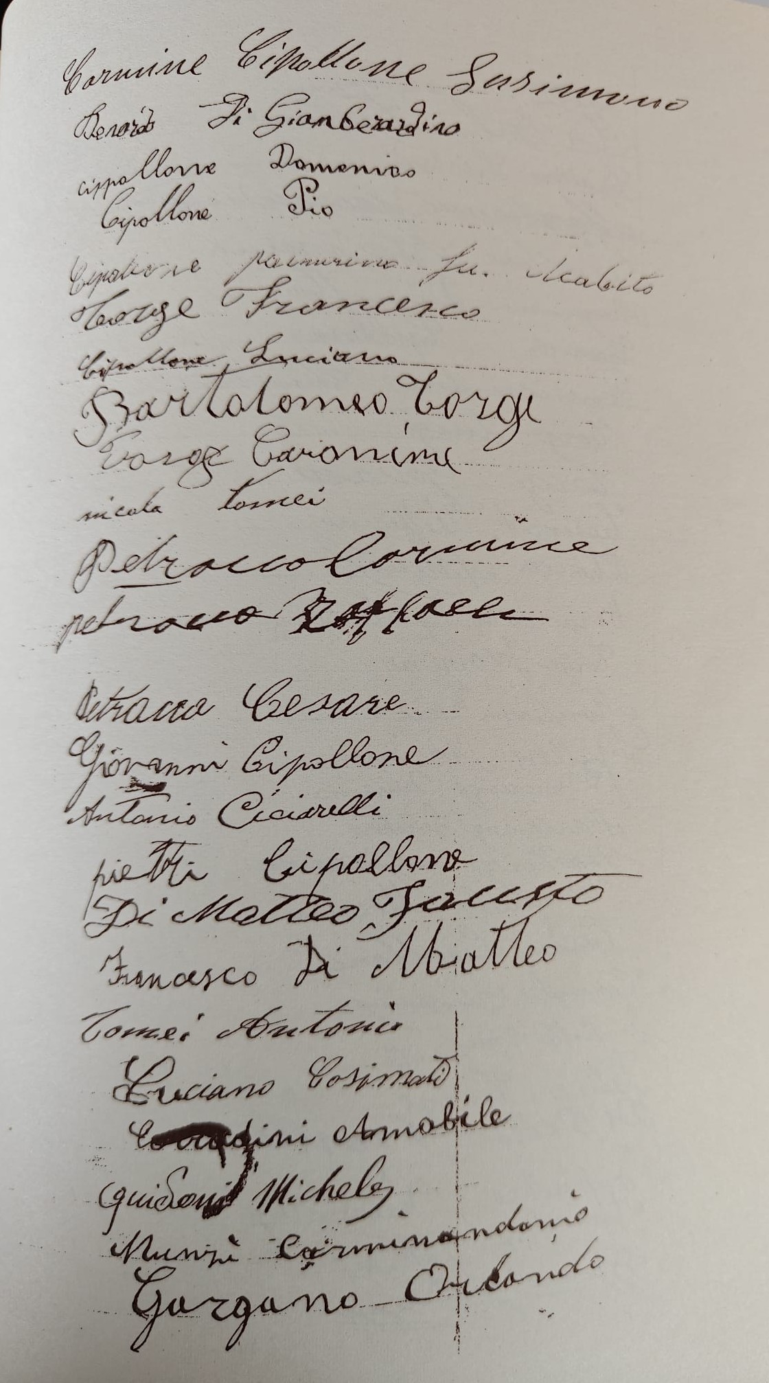 II) Con la partenza del Dott. Cipollone siamo rimasti privi anche del nostro rappresentante podestarile. Per quanto egli seguiti ad assisterci, noi non possiamo distoglierlo dalle sue occupazioni professionali per portargli tante questioni private e collettive che interessano questa popolazione e perciò è necessario provvedere alla nomina di un nuovo rappresentante che abbia maggiore possibilità di curare i nostri interessi nelle relazioni col Comune. Allo scopo i sottoscritti si permetteranno di indicare alla S.V. la persona più atta ad assumere tale incarico e ciò faranno verbalmente, qualora la S.V. volesse consultarli in proposito.